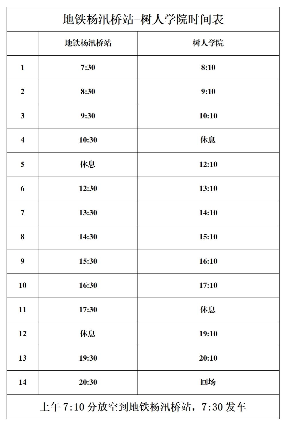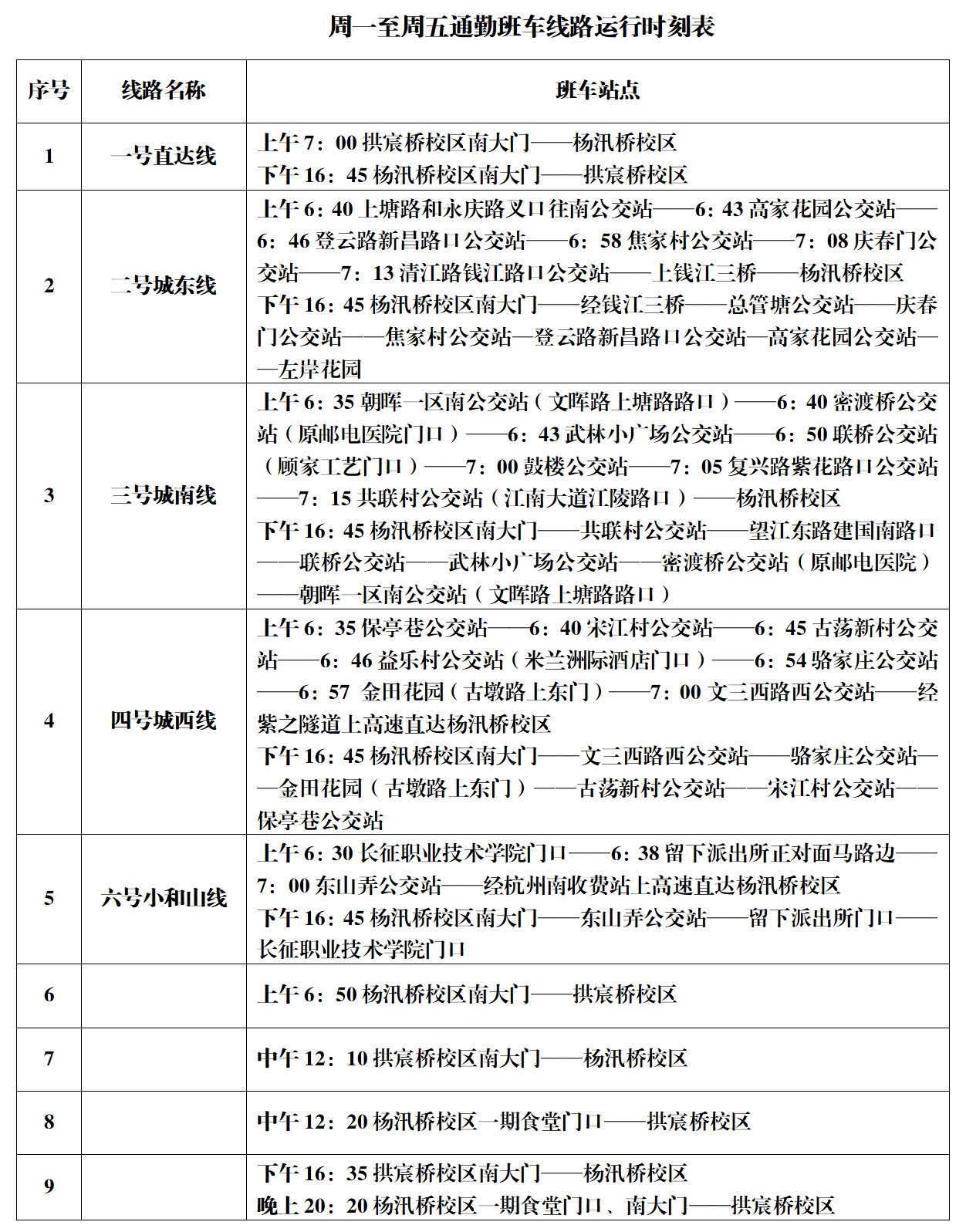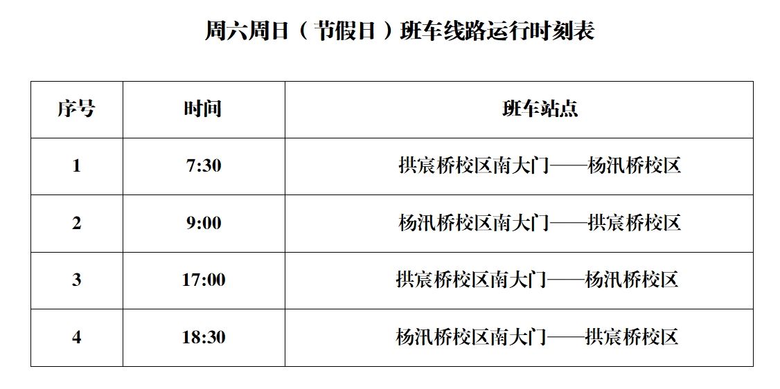 两校区班车运行时刻表(2024年9月25日更新)