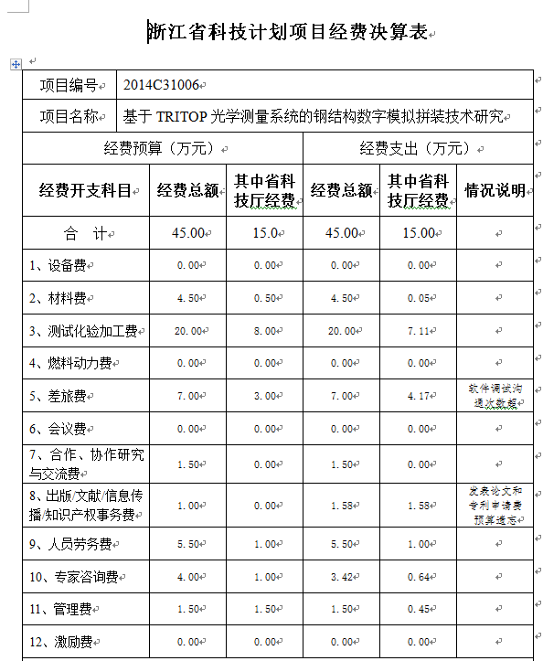 结题信息(或经费使用明细)