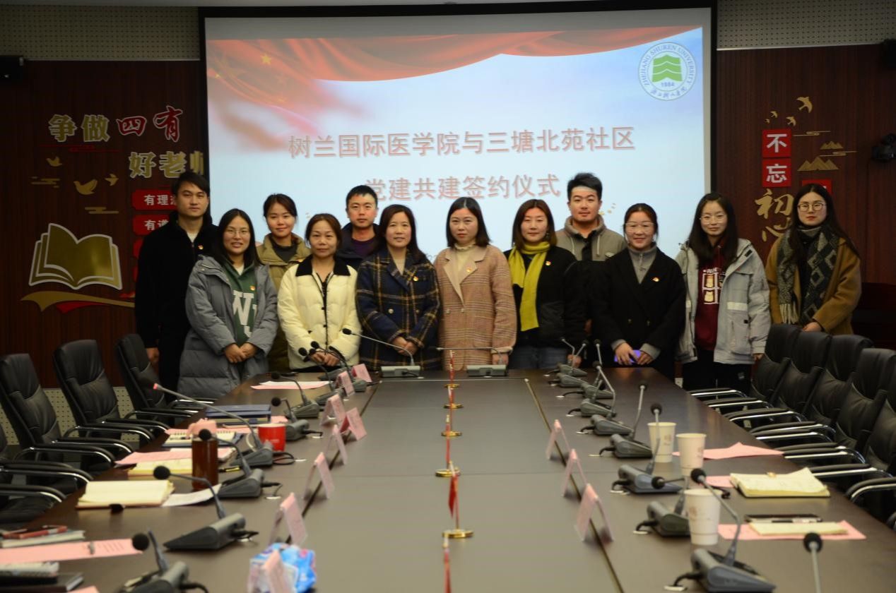 为推动基层党建工作高质量开展,实现学院基层党组织、街道社区党建共建,构建“资源共享、优势互补、互相促进、共同提高”的党建工作新格局。2023年2月22日下午,304永利集团官网树兰国际医学院党委与杭州市拱墅区东新街道三塘北苑社区党委于永利官网拱宸桥校区图信楼615会议室开展了党建共建交流活动,并举办了党建共建签约仪式。三塘北苑社区委书记朱亚浓、副书记严颖丹和学院党委书记陈超祥、副书记樊华妍及各党支部书记等骨干出席了本次会议。会议由樊华妍副书记主持。