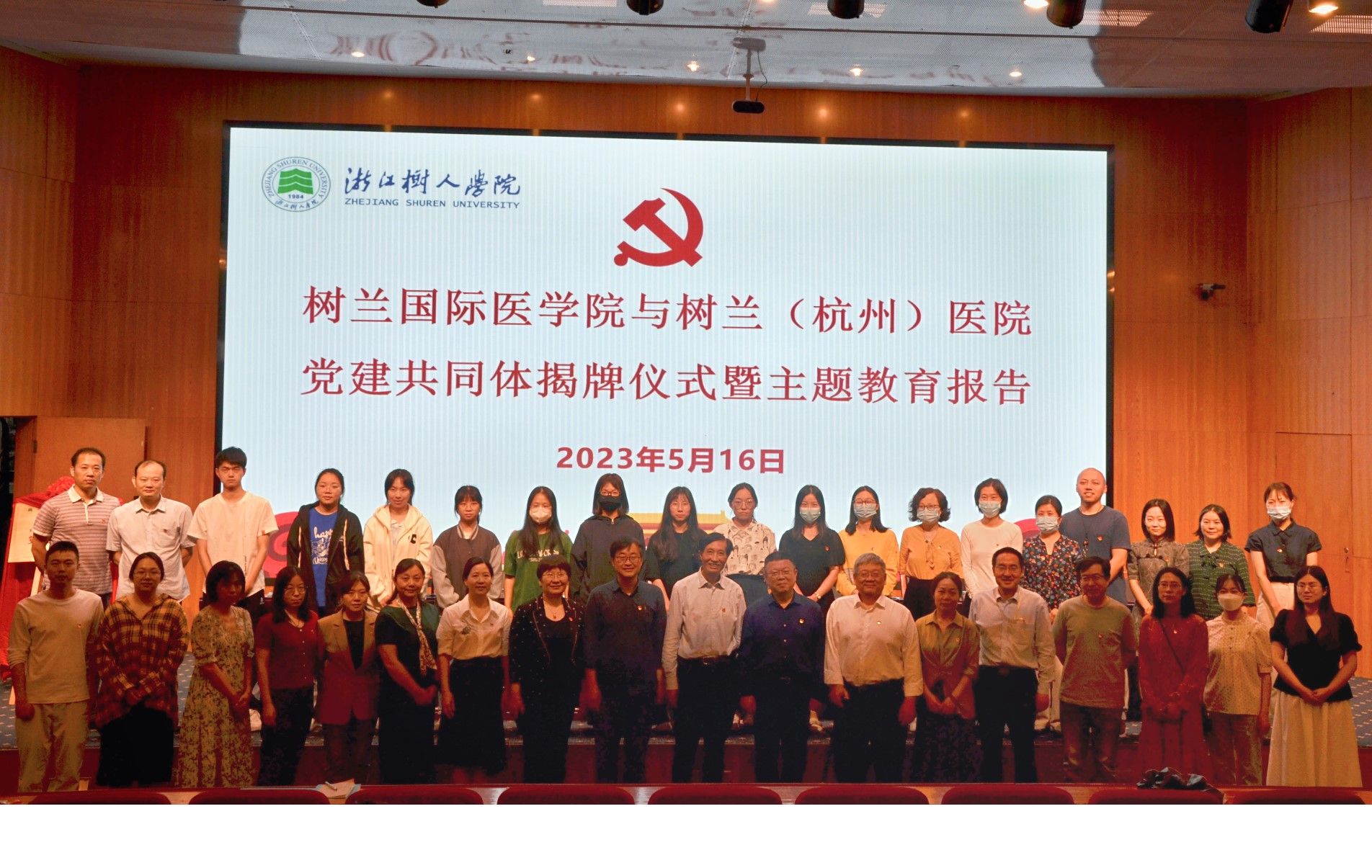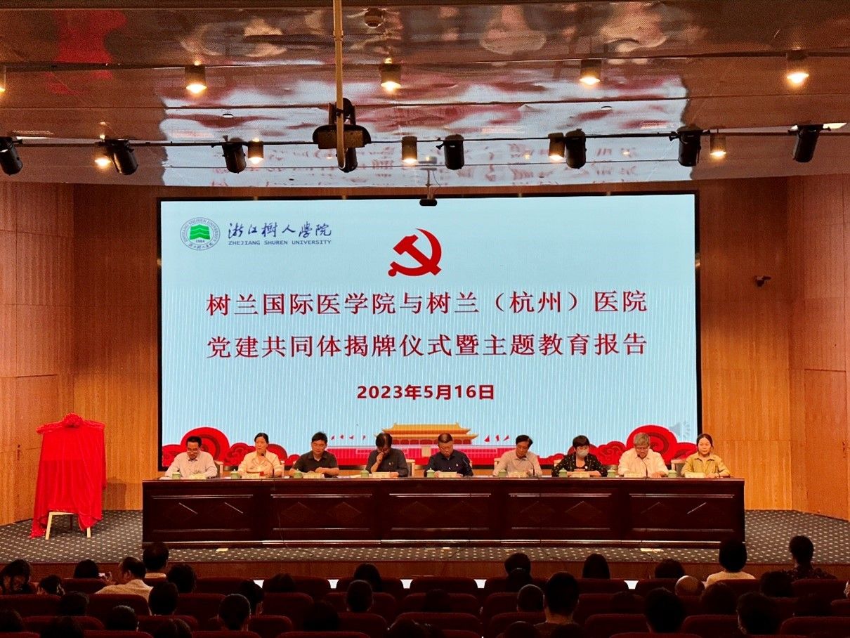 2023年5月16日下午,树兰国际医学院与树兰(杭州)医院党建共同体揭牌仪式暨主题教育报告在学术报告厅隆重举行。