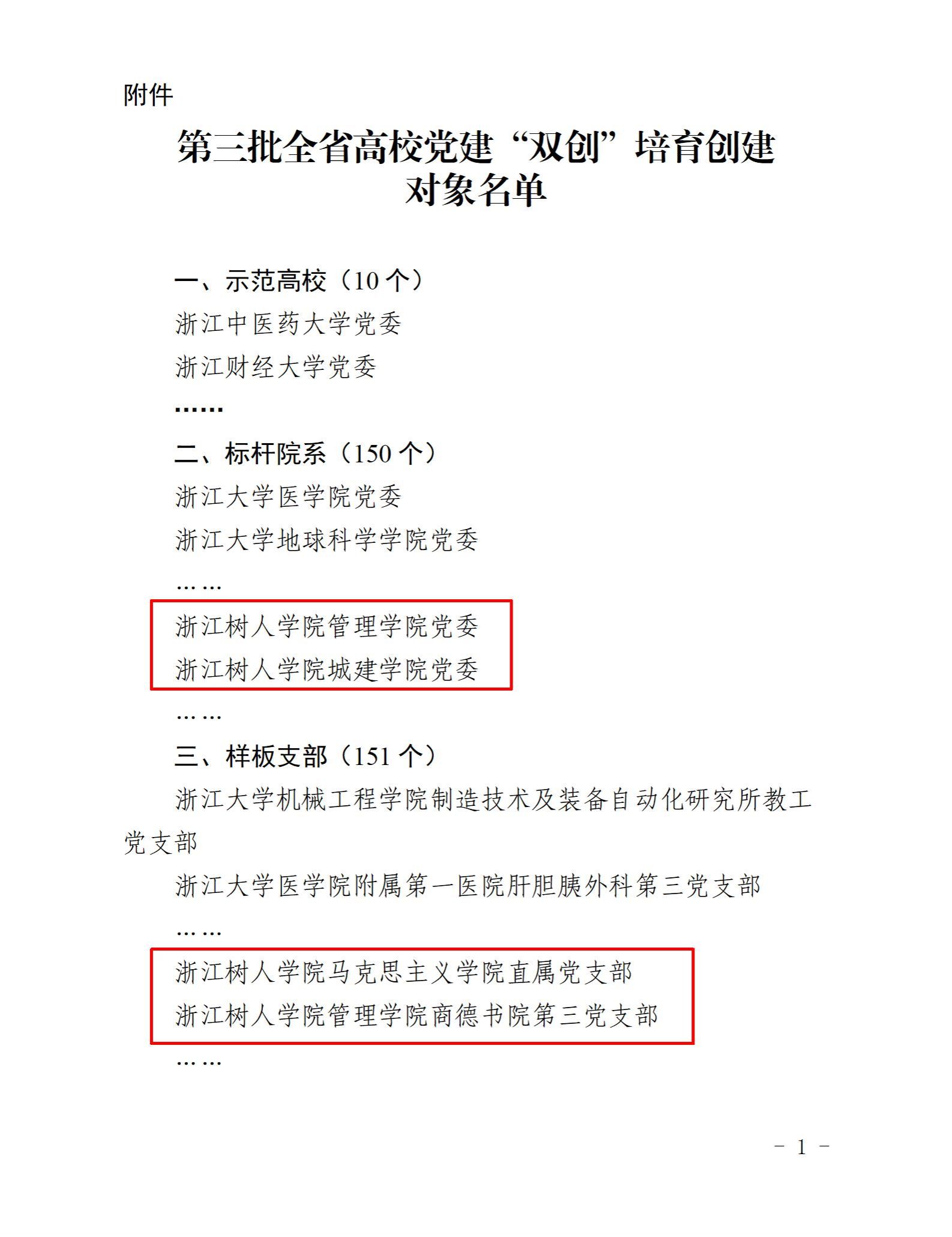 近日,中共浙江省委教育工作委员会公布了第三批全省高校党建“双创”培育创建对象名单,永利官网管理学院党委、城建学院党委获批标杆院系培育创建单位;马克思主义学院直属党支部、管理学院商德书院第三党支部获批样板支部培育创建单位。