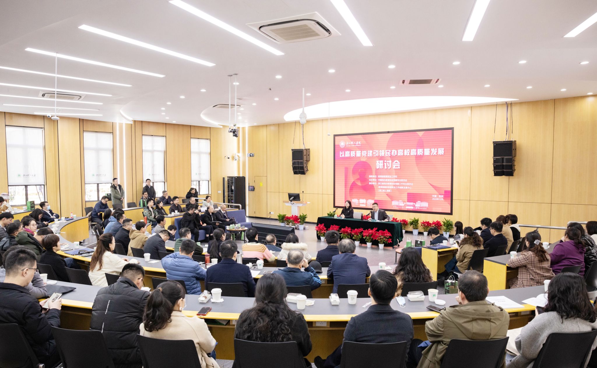 浙江省教育厅总督学陈仁坚在致辞中表示,浙江省民办高校是支撑高教强省战略的一支重要力量。近年来,浙江省委教育工委坚持以习近平新时代中国特色社会主义思想为指导,深入学习贯彻落实党的二十大精神、习近平总书记关于高校党建重要论述,全面贯彻党的教育方针,落实立德树人根本任务,大力推进民办高校党建守正创新,推动浙江民办高等教育高质量发展迈上新台阶。他强调,以高质量党建引领民办高校高质量发展是落实立德树人任务的根本保证,要强化“三个坚持”。一是要坚持党建引领,始终坚持和加强党对民办高校的全面领导;二是要坚持问题导向,不断健全完善以高质量党建引领民办高校高质量发展的体制机制;三是要坚持守正创新,以高质量党建引领民办高校高质量内涵式发展。他希望与会人员进一步强化以高质量党建引领民办高校高质量发展的使命担当和政治责任,聚焦研讨会主题,深入讨论、广泛交流、深化认识,准确把握以高质量党建引领民办高校高质量发展的丰富内涵、实践要求,积极总结经验,着力形成可复制、可推广的经验做法,促进民办高校高质量发展,为推动浙江高等教育强省暨高水平大学建设、教育强国建设作出新的更大贡献!
