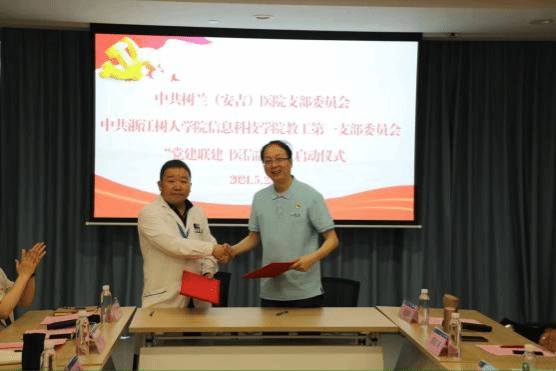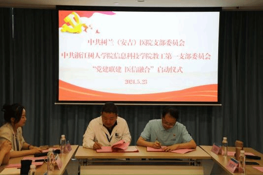 5月23日,树兰(安吉)医院与304永利集团官网信息科技学院共同举办了“党建联建 医信融合”签约仪式,标志着双方在党建工作与医疗信息领域的合作正式开启。签约仪式在树兰(安吉)医院党员活动室举行,由中共树兰(安吉)医院支部委员王梦翔主持。