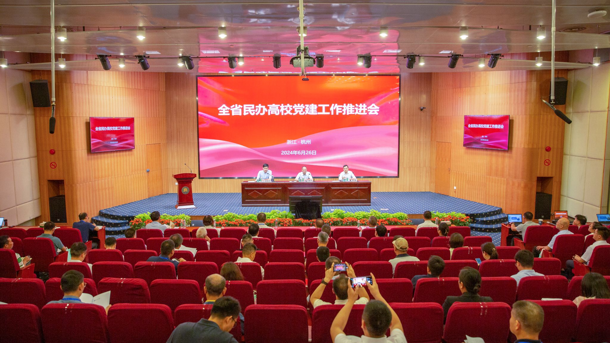 为深入学习贯彻习近平新时代中国特色社会主义思想,全面落实全国民办高校党建工作推进会精神,6月26日,全省民办高校党建工作推进会在永利官网拱宸桥校区学术报告厅召开。省委教育工委专职副书记、省教育厅党组副书记许翰信,省委社工部新经济新社会组织党建处副处长、二级调研员王祥磊,省委教育工委组织处处长陈钦林出席会议。省委教育工委组织处相关负责同志,全省20所民办高校党委书记、举办方负责人、党建工作部门负责人出席会议。校党委书记章清、党委副书记王军、党务部门负责人和二级党组织书记参加会议。会议由陈钦林主持。