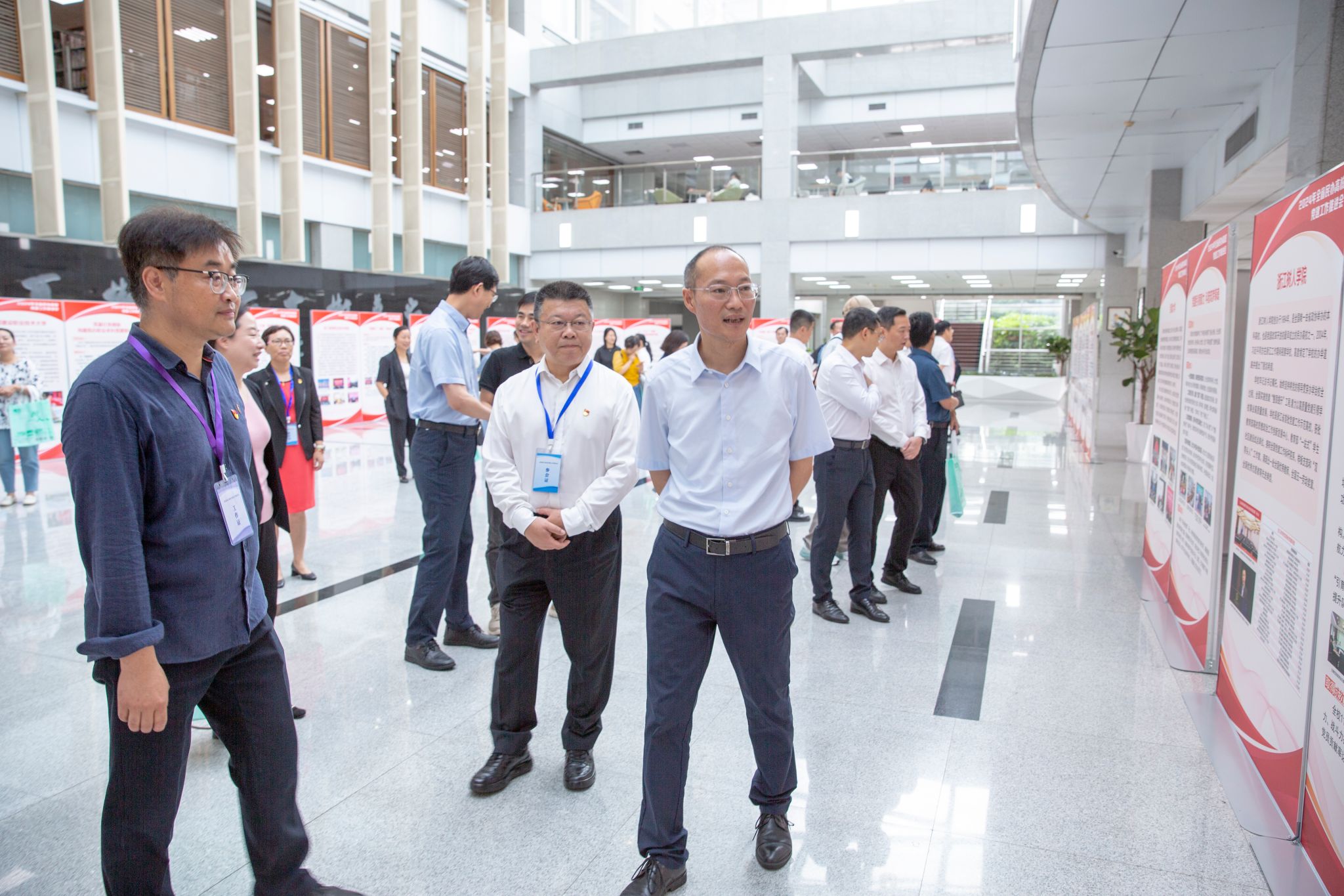 会前,许翰信和参会人员观摩了民办高校党建工作案例展。