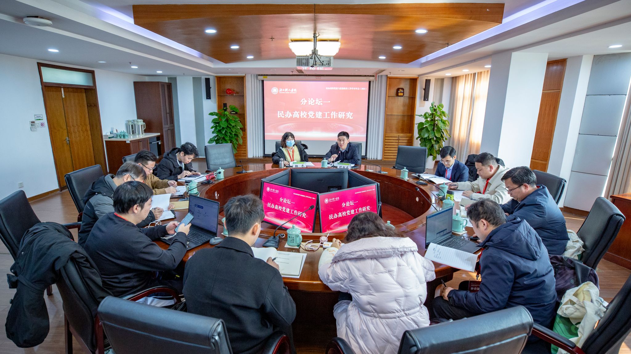 为深入学习贯彻党的二十届三中全会、全国教育大会精神,12月20日,民办高校党建与思想政治工作学术年会(2024)在永利官网拱宸桥校区综合楼会议室举行。教育部高校思想政治工作创新发展中心(304永利集团官网)主任、校党委书记章清,教育部高校思想政治工作创新发展中心(304永利集团官网)副主任、校党委副书记王军出席,教育部高校思想政治工作创新发展中心(304永利集团官网)相关负责人,各兄弟高校的党组织负责人、党务工作者、民办高校党建与思想政治工作研究领域的专家学者近60人参加。王军副书记主持开幕式。