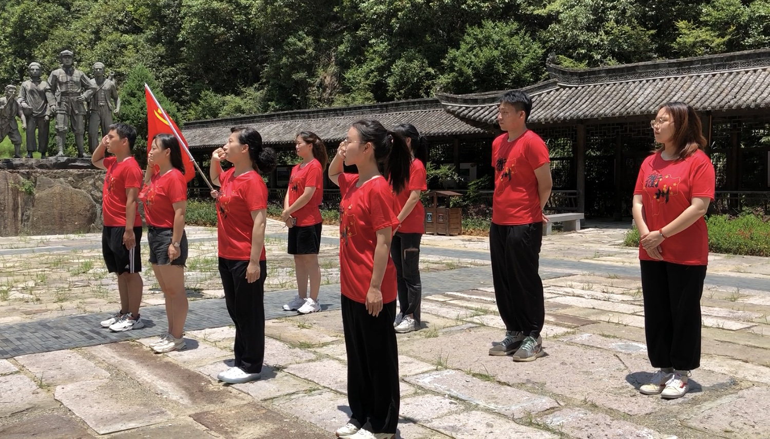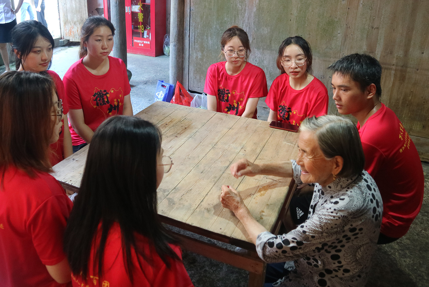 为重温红色历程,在革命传统教育中筑牢信仰之基,实践团师生们参观瞻仰开化一区苏维埃政府旧址、中共闽浙赣省委旧址和中共浙皖特委旧址,深刻缅怀革命先辈的丰功伟绩,学习红色革命精神,汲取红色成长力量。师生党员们和93岁高龄的红色文化守望者——最美衢州人林翠娥老奶奶在《没有共产党就没有新中国》的歌声中回顾峥嵘岁月,在鲜红党旗前高擎右拳重温入党誓词,在誓词中铭记初心使命。