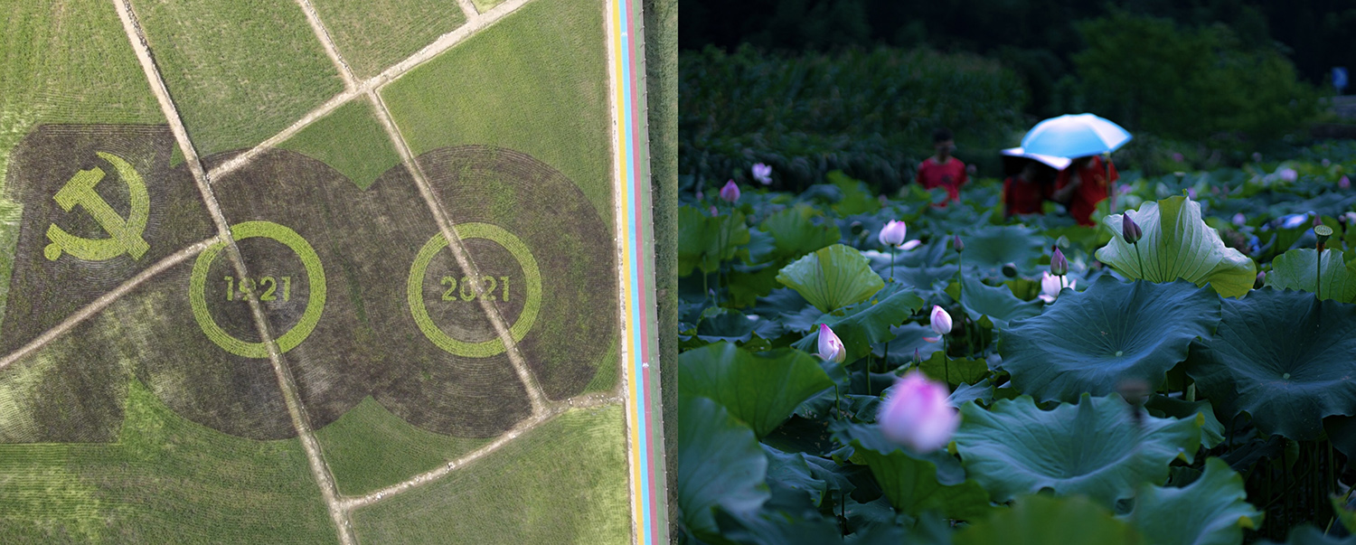 上百亩的彩色稻田缓缓铺展出建党百年的标志性图案,色彩艳丽;烈日下盛开的荷花,风姿绰约,这片美丽的土地就是——大墅镇孙家畈村。孙家畈村近700亩的田地,有盒马鲜生基地、市种业集团彩色稻田、三叶扁藤产业园、中药材黄精基地等多项产业。它利用自身优势,因地制宜,在发展生态旅游业的同时,引进大企业来为农田增色、为村民增收。
