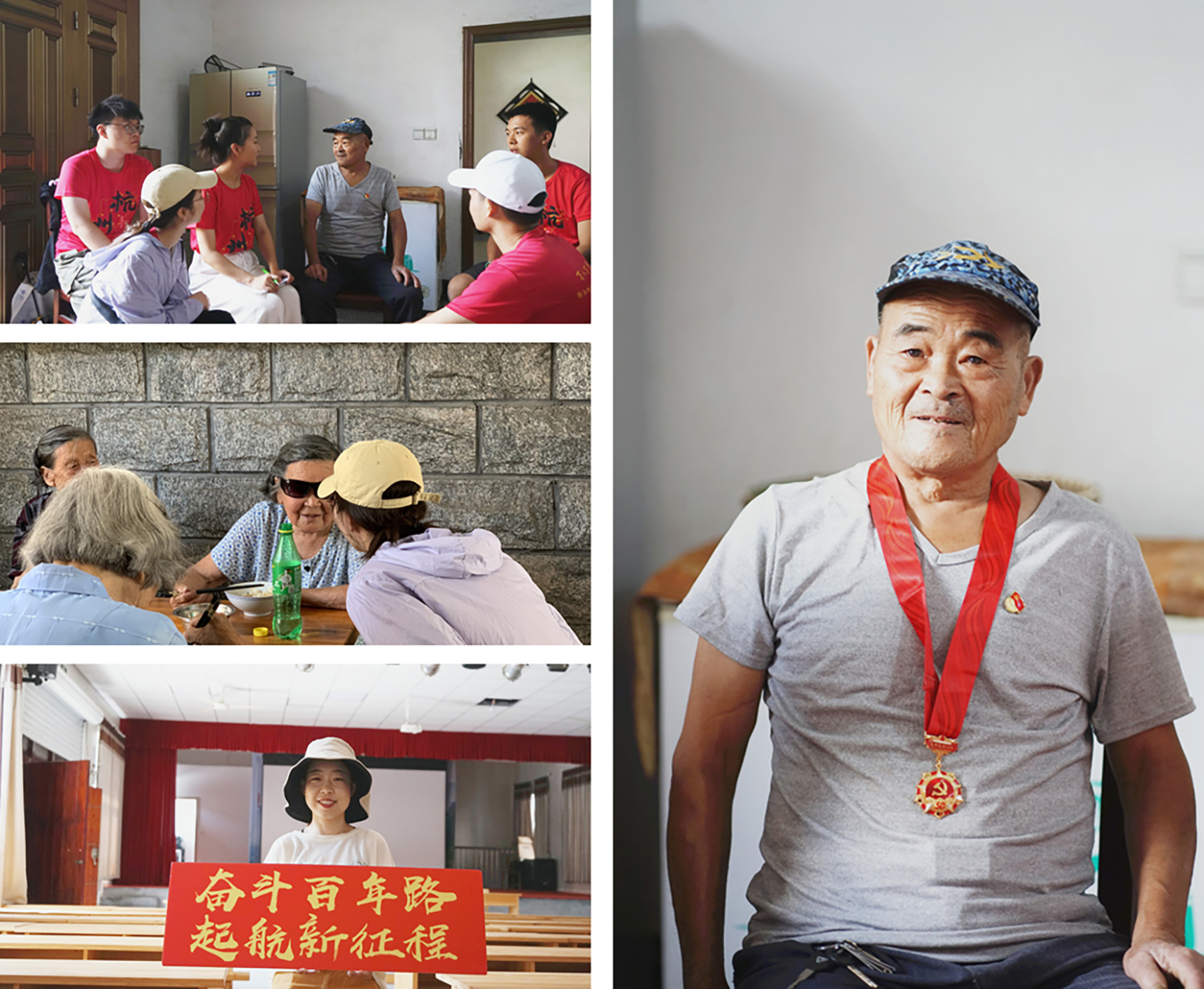 穿越淳安队前往村里拜访一位有着51年党龄的老党员——余发根爷爷。余爷爷向大家讲述了红军长征途径孙家畈村时的一个故事,在这里长眠着一位不知任何信息的地下党烈士,人们只能通过他手臂上系的红缎带知道他地下党的身份。余爷爷还特别向大家展示了“光荣在党50年”纪念章,并深情地说道“我这一辈子把生命献给了党,为党工作一生!”。