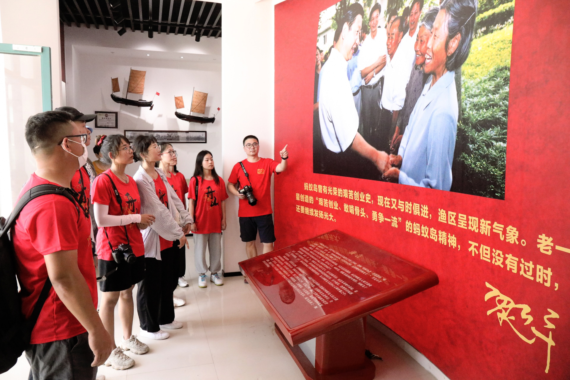 7月4日,暑期社会实践师生参观走访了蚂蚁岛创业纪念室、全国第一个人民公社旧址、《军港之夜》词作创作地等红色教育基地,通过参观珍贵历史旧址、观看史料照片和历史实物、采访党员和人民群众,加深了对“艰苦创业、敢啃骨头、勇争一流”蚂蚁岛精神的理解和认识。