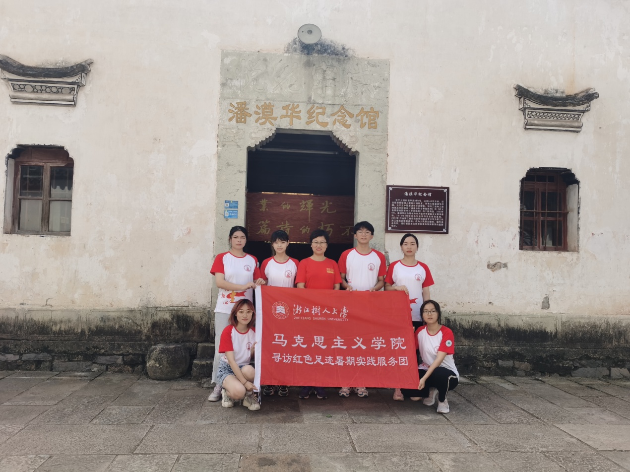 为庆祝中国共产党成立100周年,根据学校党史学习教育活动安排,7月7日至10日,马克思主义学院中特研读会一行四十余位师生前往金华开展暑期社会实践活动。其中,罗云老师带领的6名同学,前往金华市武义县上坦村潘漠华纪念馆寻访红色足迹,重温革命诗人潘漠华烈士的光辉事迹。