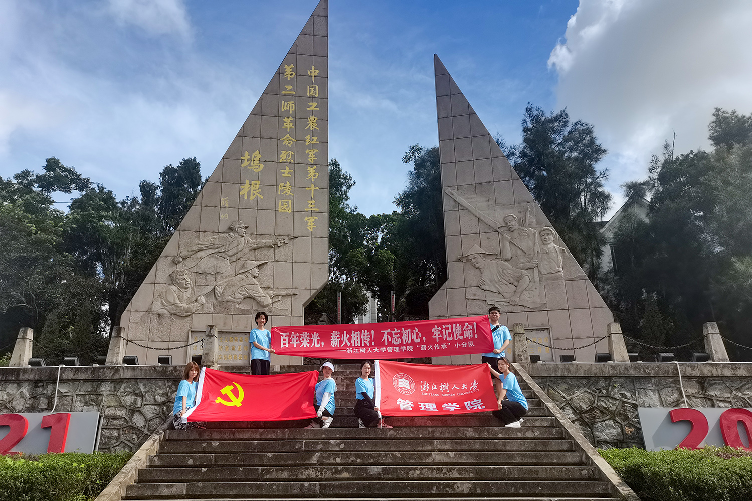 为庆祝建党百年,积极响应学校“寻访红色足迹,汲取成长力量”暑期社会实践的活动号召,7月5日上午,管理学院“薪火传承”暑期实践团队在指导老师朱砚屏的带领下前往台州温岭市进行了为期三天的暑期实践活动。本次活动充分发挥台州温岭丰富的爱国主义教育资源优势,引领学生们增强爱党爱国情怀,把知历史、晓国情、爱祖国、跟党走的热情转化为当代自身的责任意识和实际行动。