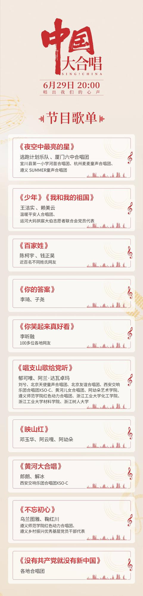 为庆祝建党百年,由人民日报组织的“中国大合唱”5G云歌会在6月29日20:00时准时开播,此次活动人民日报客户端、微博、抖音、快手、B站等进行同步直播。