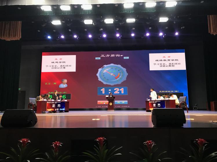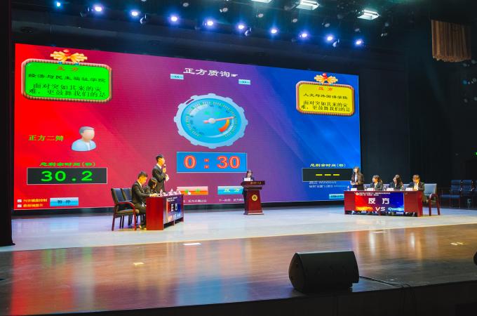 本次大赛历时近一个半月,分为选拔赛、初赛、半决赛和决赛四个环节。其中人文与外国语学院辩论队和经济与民生福祉学院辩论队、城建学院辩论队和继续教育学院辩论队,经过层层选拔从学校各支辩论队中脱颖而出,进入决赛。决赛分为两场,首先是季军赛,城建学院和继续教育学院围绕“学习党史,我们更应该铭记苦难还是更应该铭记辉煌”这一辩题展开精彩辩论。再是冠军赛,经济与民生福祉学院和人文与外国语学院围绕“面对突如其来的灾难,更鼓舞我们的是英雄的背影,还是彼此的歌声”这一辩题展开巅峰对决。