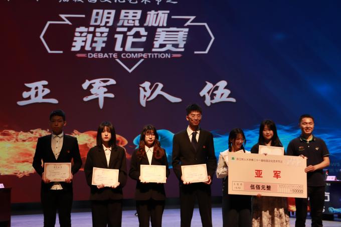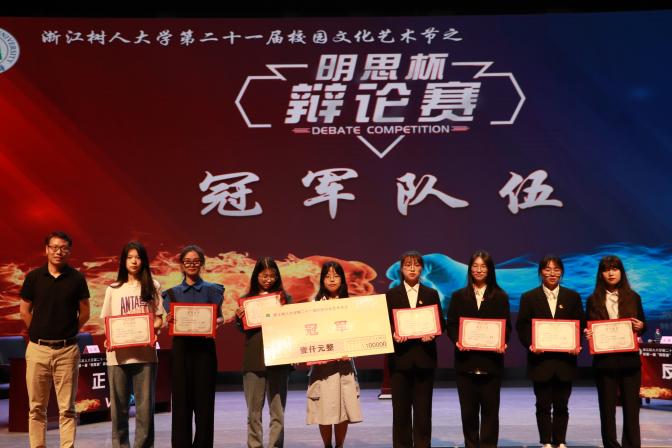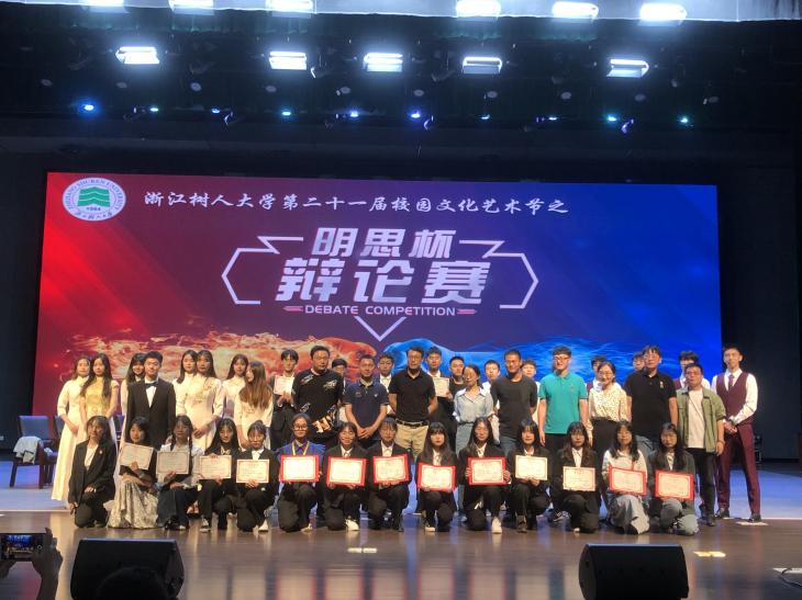 为缅怀革命先烈,感悟初心使命,献礼建党100周年,用辩论激发全校师生的爱党爱国热情,特举办第一届大学生“明思杯”辩论赛。近日,由共青团浙江树人大学委员会主办,共青团浙江树人大学人文与外国语学院(明哲书院)分委员会、熙言辩论社、浙江树人大学校辩论队共同承办的校第21届校园文化艺术节之第一届大学生“明思杯”辩论赛决赛在杨汛桥校区礼堂圆满落下帷幕。出席本次活动的有:浙江树人大学校团委书记姬海宁,浙江工业大学之江学院辩论队指导老师周春,浙江树人大学党委宣传部刘俊,浙江树人大学人外学院明哲书院主管黄达聪,浙江树人大学管理学院商德书院辅导员杜欣以及各书院团学负责人和辅导员老师们。同时邀请到了曾获2019年世界杯北美赛区冠军、2020年南莹杯单场最佳辩手,14级浙江树人大学校辩论队杨子江同学参加此次活动。