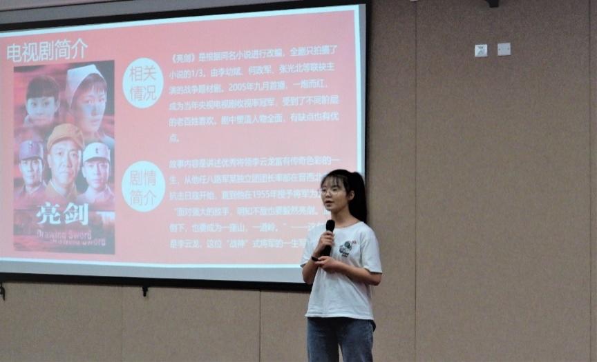 围绕红色主题,本次推荐大赛共分为影音类和文学类。影音类作品以国产国风类动漫、国产国风类电影、国产国风类电视剧、含国风元素的单曲、以传统乐曲演奏的音乐、民歌等元素为内容;文学类作品以红色经典、国学传统、国内优秀文学作品等元素为内容,以ppt演讲的形式呈现。每一位参赛同学经过充分准备,满怀热情地登台演示自己喜爱的红色作品。