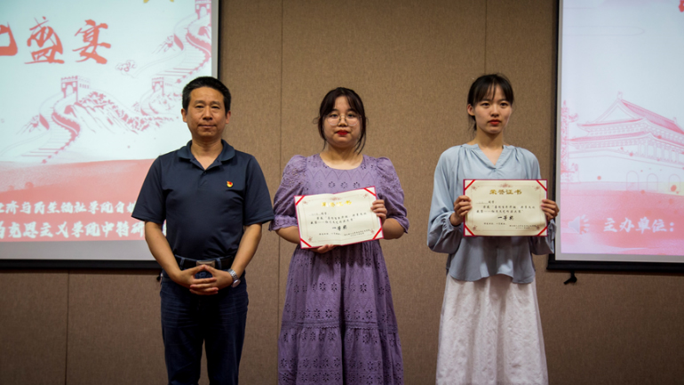 为纪念建党一百周年,浓郁校园红色文化氛围,5月24日晚,第一届校红色文艺作品推荐与分享大赛在杨汛桥校区学术报告厅顺利举行。本次大赛由马克思主义学院主办,经济与民生福祉学院自媒体社与马克思学院中特研读会联合承办。毫末书院副院长、艺术学院党委副书记刘波永,马克思主义学院教师陈俏巧,体美劳教育中心艺术教师谢舒怡出席并担任本次活动的评委。