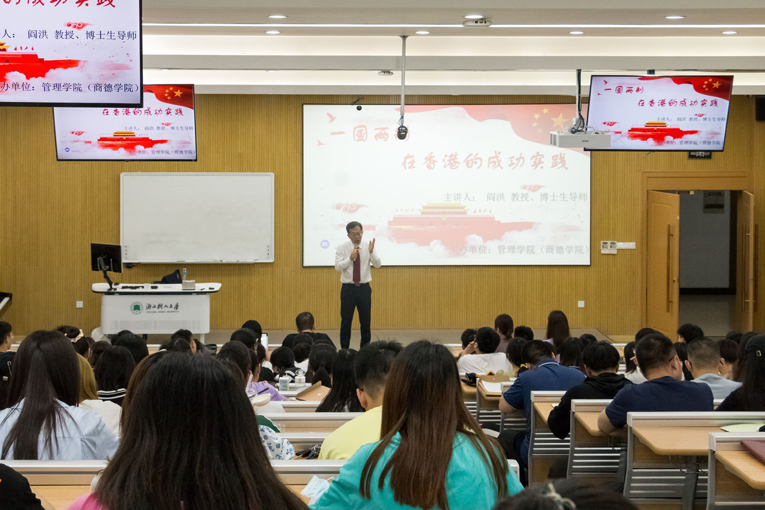 5月10日晚,管理学院院长阎洪教授以《“一国两制”在香港的成功实践》为主题,面向杭州校区管理学院在校党员、建党对象、积极分子等讲授了一堂极具思想性、历史性和针对性的党史学习教育专题党课。