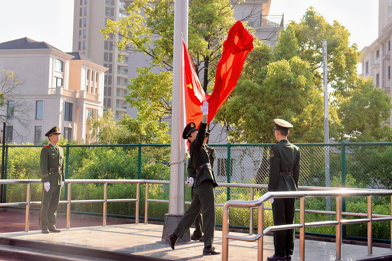 学史以明志,学史以践行。在全校党史学习教育热烈开展之际,5月10日,管理学院(商德书院)在杨汛桥校区隆重地举行了升旗仪式,学院领导班子、学院教师、杨汛桥校区全体学生参与本次活动。本次升旗仪式由商德书院副院长兼党委副书记王伟君主持。