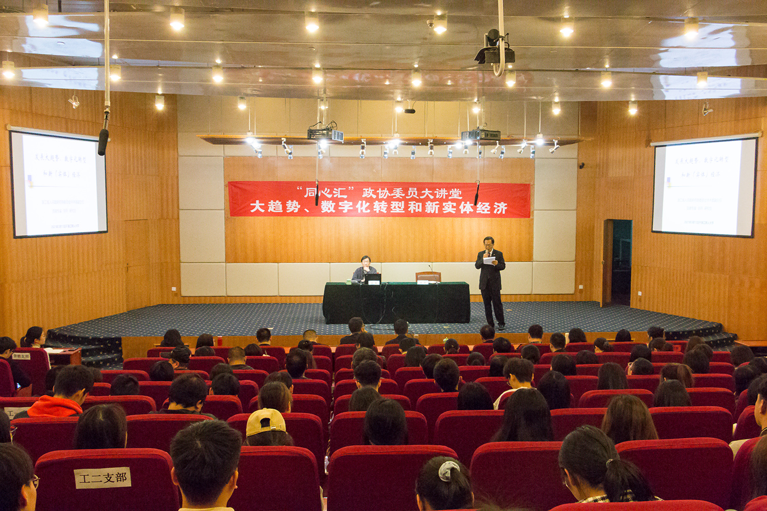 为深入贯彻习近平总书记在党史学习教育动员大会上强调的“全党同志要做到学史明理、学时增信、学史崇德、学史力行,学党史、悟思想、办实事、开新局”,强化理论武器,打造多维度、全覆盖的学习体系,管理学院坚持搭建互动联动平台,积极承办同心汇政协委员大讲堂,邀请省政协委员、省政府咨询委员会学术委副主任、省工程咨询行业协会会长刘亭研究员带来《大趋势、数字化转型和新实体经济》主题讲座,为管理学院班子成员、全体教师、200余名学生党员集体上一堂特殊的党课。