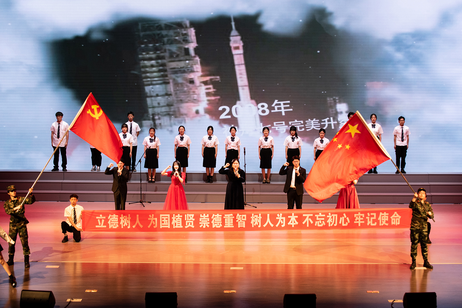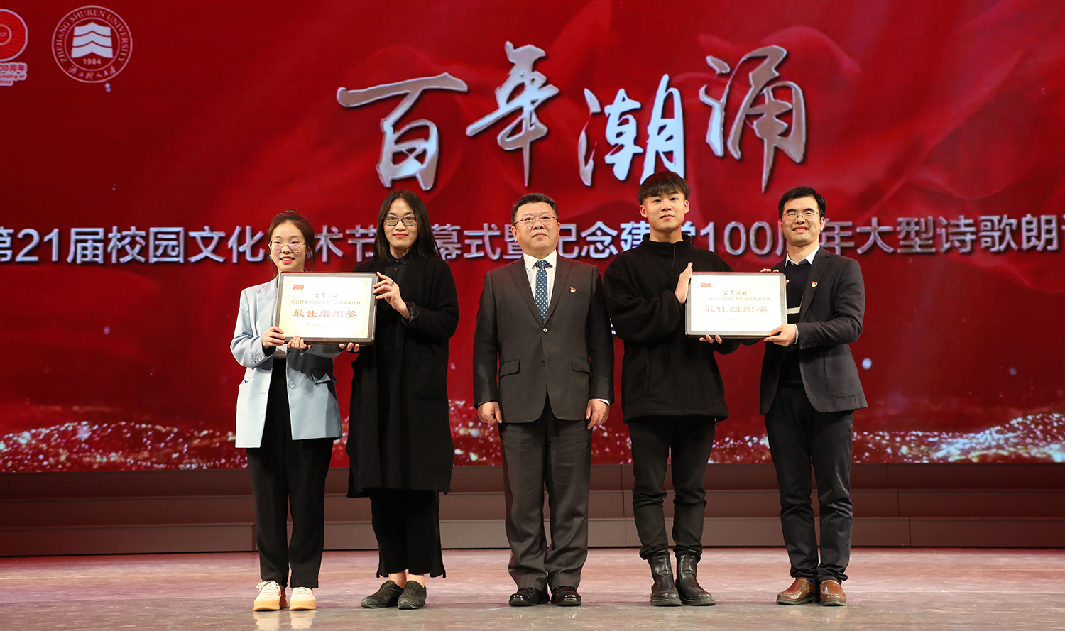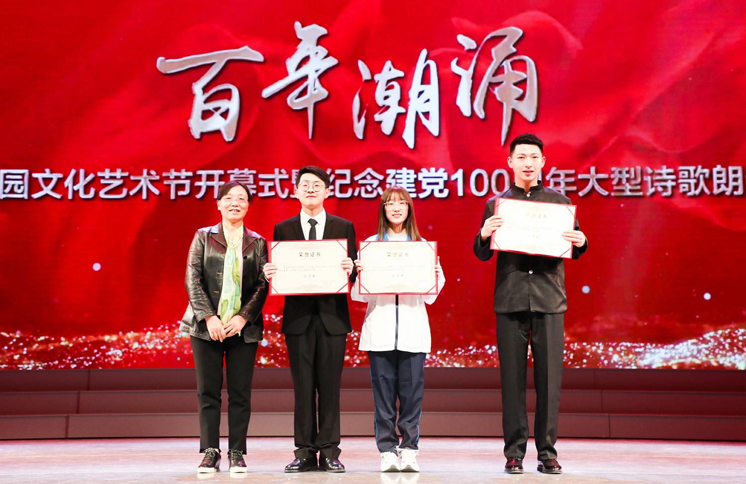 晚会还特别邀请校党委书记章清为现场观众带来诗朗诵作品《相信未来》,一声声激情澎湃的“相信未来”,点燃了全场的热情,收获了满堂的掌声。章书记用雄浑饱满的声音向在场师生讲述了生在逆境中,我们应该怎样好好的生活,怎样自我鼓励,怎样矢志不渝地恪守自己对明天的承诺。1921年的东方升起了一轮金色的朝阳,2021年的今日,党的光芒照耀着每一代拼搏的中国青年!