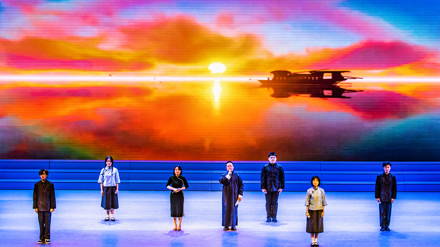 本次晚会共分为“救亡图存 苦难辉煌”、“艰苦奋斗 日月换天”、“领航复兴 大国崛起”三个篇章。从《永远的红船》、《井冈山组诗》、《长征颂》、《延安延安》到《新的曙光》、《欢迎志愿军凯旋》、《等待》、《铸华夏之基,颂改革之歌》,再到《拥子入怀》、《奥运梦想》、《隧道里的生命》,最后以《盛世中国》圆满收场,现场14首诗歌朗诵,或激昂悲壮,或欢快喜悦,向我们叙述了波澜壮阔的共产党发展史,在历史的推移中,感受中华的崛起,体验民族的复兴。