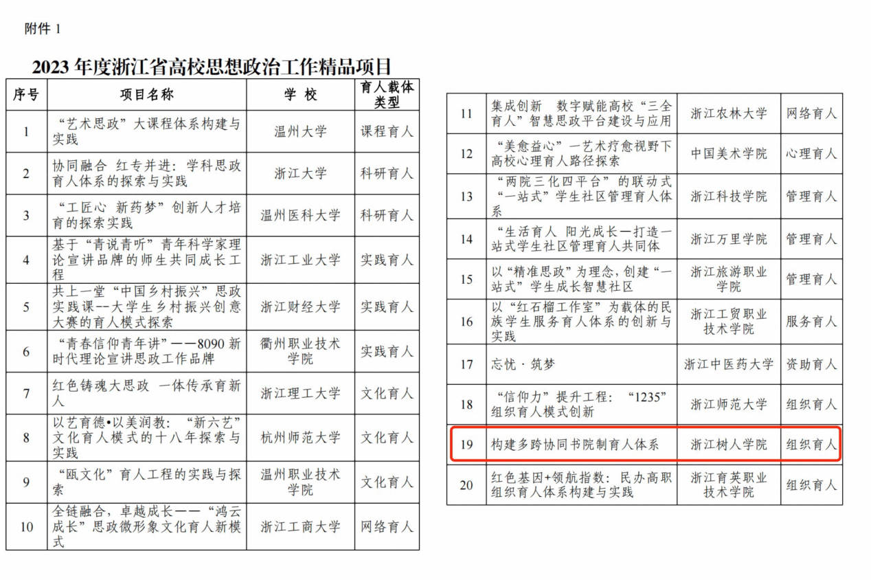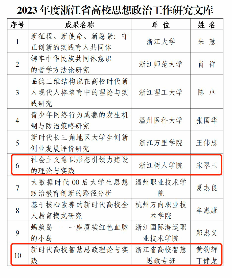 11月22日,浙江省教育厅发布《浙江省教育厅办公室关于公布浙江省 2023 年度高校思想政治工作质量提升综合改革与精品建设项目立项结果的通知》(浙教办函〔2022〕361 号),最终确定浙江省2023年度高校思想政治工作精品项目20项、浙江省高校思想政治工作中青年骨干教师10位、浙江省高校网络教育名师12位、浙江省高校原创文化推广行动作品10项、浙江省高校思想政治工作研究文库10项,永利官网申报的多个思想政治工作项目获批和立项。
