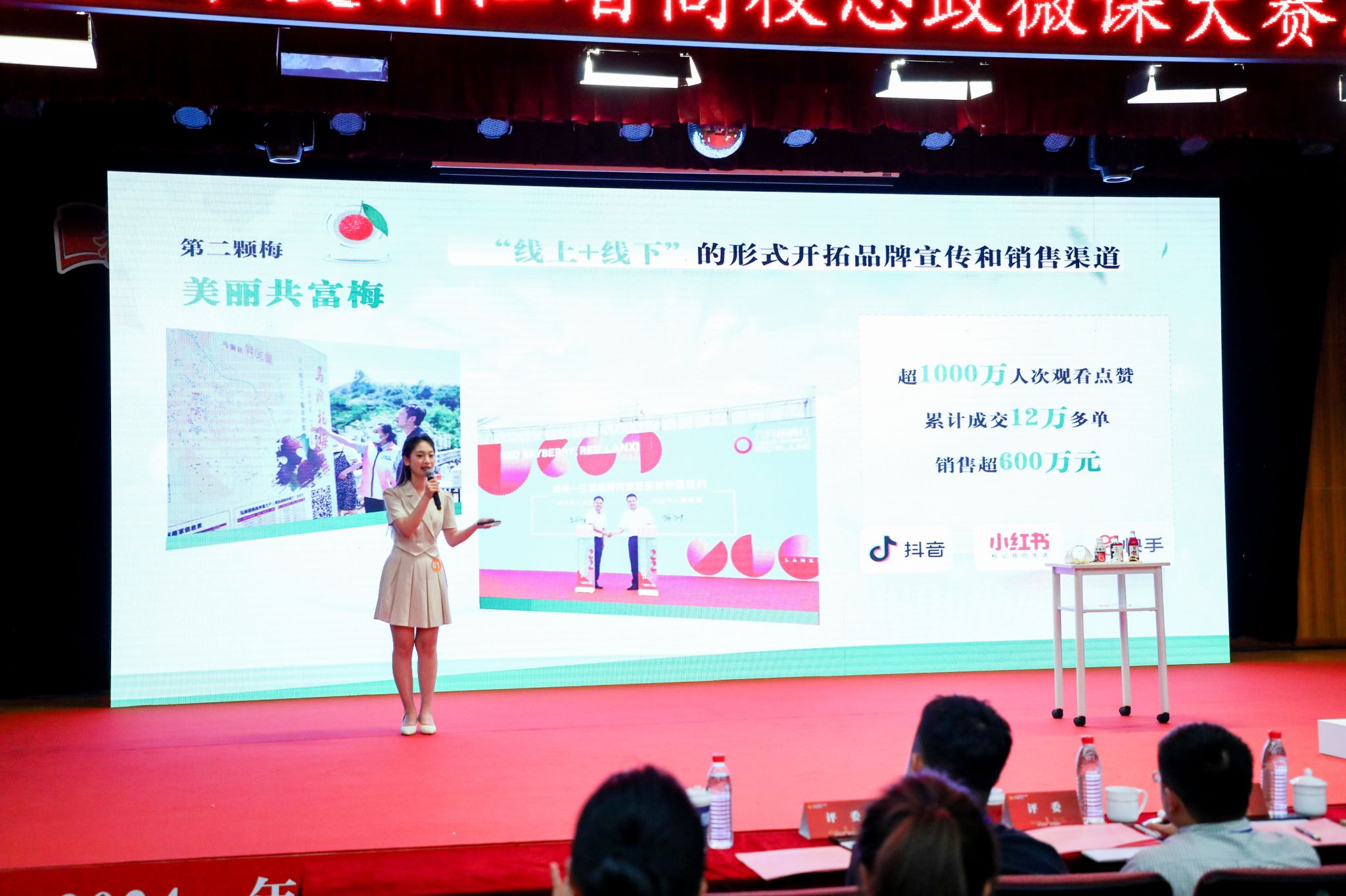 据悉,本次大赛设红色教育、发展成就、青春奉献三个类别,全省共107所高校限额推报621名选手参加复赛,122名选手入围决赛,30名选手入围总决赛。在总决赛中,朱早早同学以兰溪杨梅为出发点和落脚点,通过系统讲述并蒂的“三颗”杨梅:数智共富梅、美丽共富梅、政策共富梅,以点带面成功解锁了隐藏在浙江共富背后的“1288”密码,赢得了在场评委的一致认可和好评。