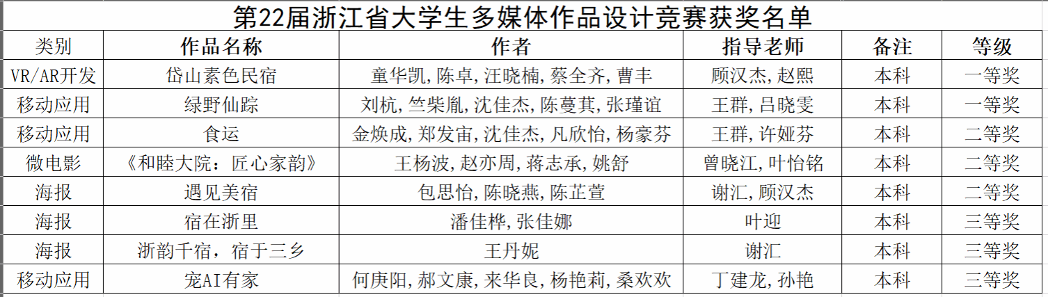 近日,永利官网学子在第二十二届浙江省大学生多媒体作品设计竞赛中获得佳绩,获一等奖2项、二等奖3项、三等奖3项。