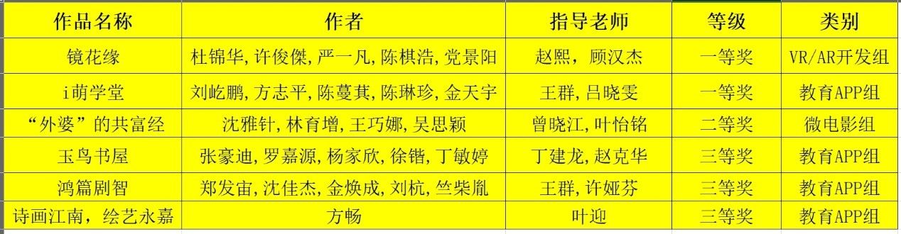 信息科技学院、艺术学院、人文与外国语学院、校全媒体中心的师生共同参与了本次比赛,各支参赛队伍通过动态海报、数字教育资源、微电影、VR/AR等多种手段和方式,彰显了富有创意和个性的多媒体设计成果。其中,信息科技学院王群、吕晓雯老师指导的作品《i萌学堂》获得教育App组一等奖;艺术学院赵熙、信息科技学院顾汉杰老师指导的作品《镜花缘》获得VR/AR开发组一等奖。值得一提的是,这两组作品均在各自赛道蝉联一等奖。