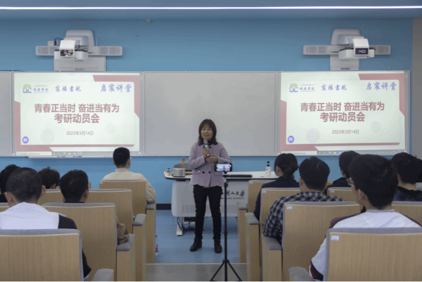 最后,在辅导员沈小燕老师对此次考研动员会参会同学们真诚的祝愿及殷切嘱托下,会议圆满结束。动员会结束后,学院邀请具有多年考研培训经验的李嘉伦老师从考研解析、院校&专业指导及考研答疑三个方面为同学们进行了考研事项的专业解读。