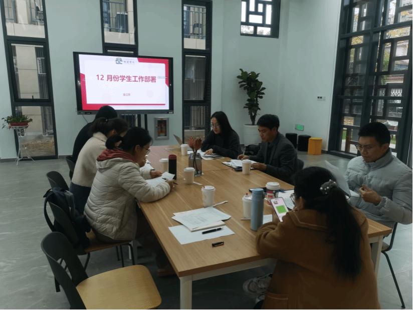 在第三阶段,夏书记对12月份学生思政工作重点进行了部署,要求期末阶段务必做好安全稳定工作,继续开展好党建、思想教育与学风建设工作、有序完成就业工作及团学工作。随后,各位辅导员汇报了各自近期要开展的主要工作,并就需要协调配合的事项进行了沟通。