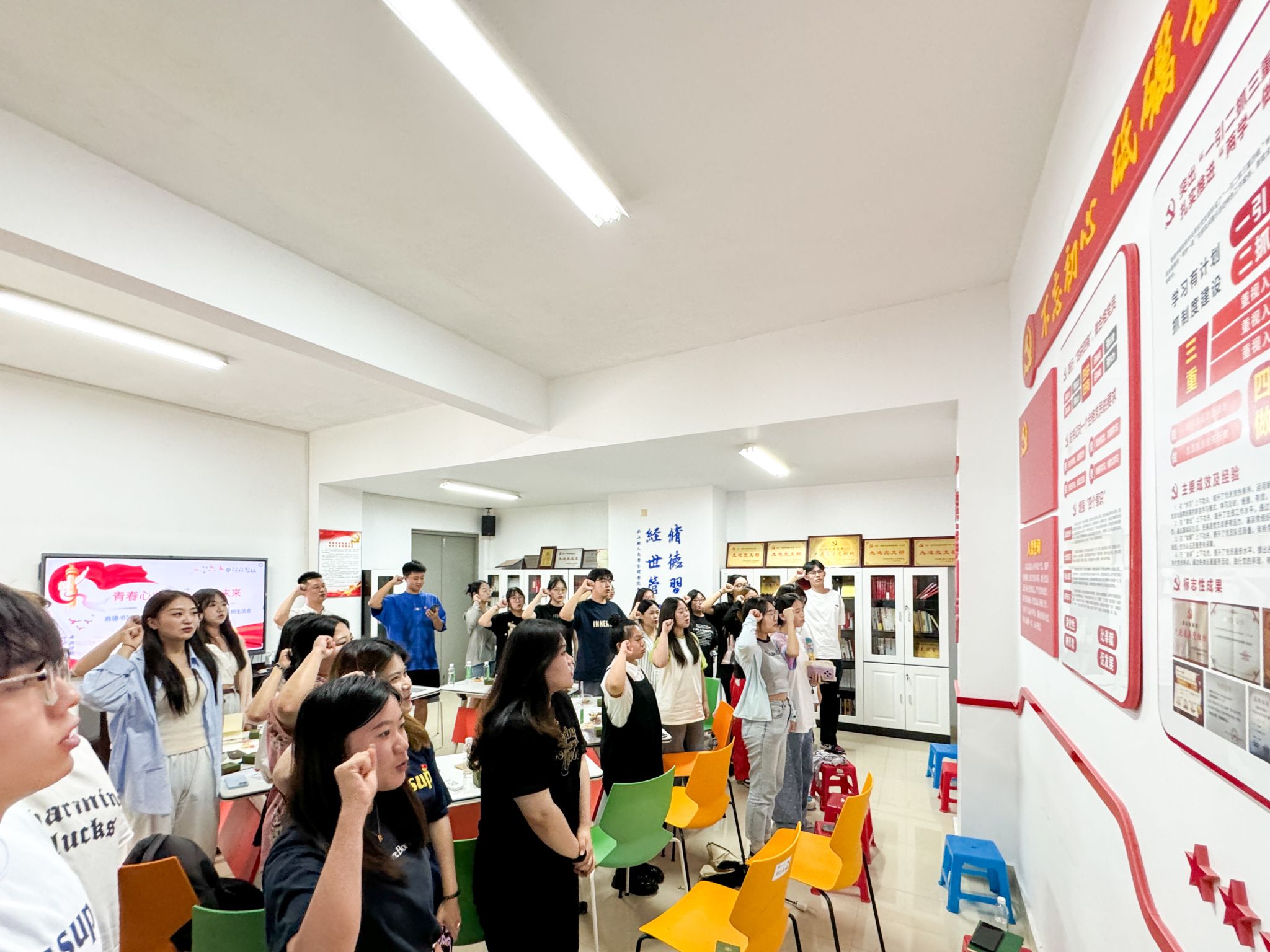 “我志愿加入中国共产党,拥护党的纲领,遵守党的章程……”一声声铿锵有力的入党誓词响彻书院。第六党支部全体毕业生党员在支部书记张勇财同志的带领下,面向鲜红党旗,共同重温入党誓词。党员们声音洪亮、激情澎湃,在铮铮誓言中重温了入党初心,在入党誓言中强化了党员身份认同,坚定了理想信念。