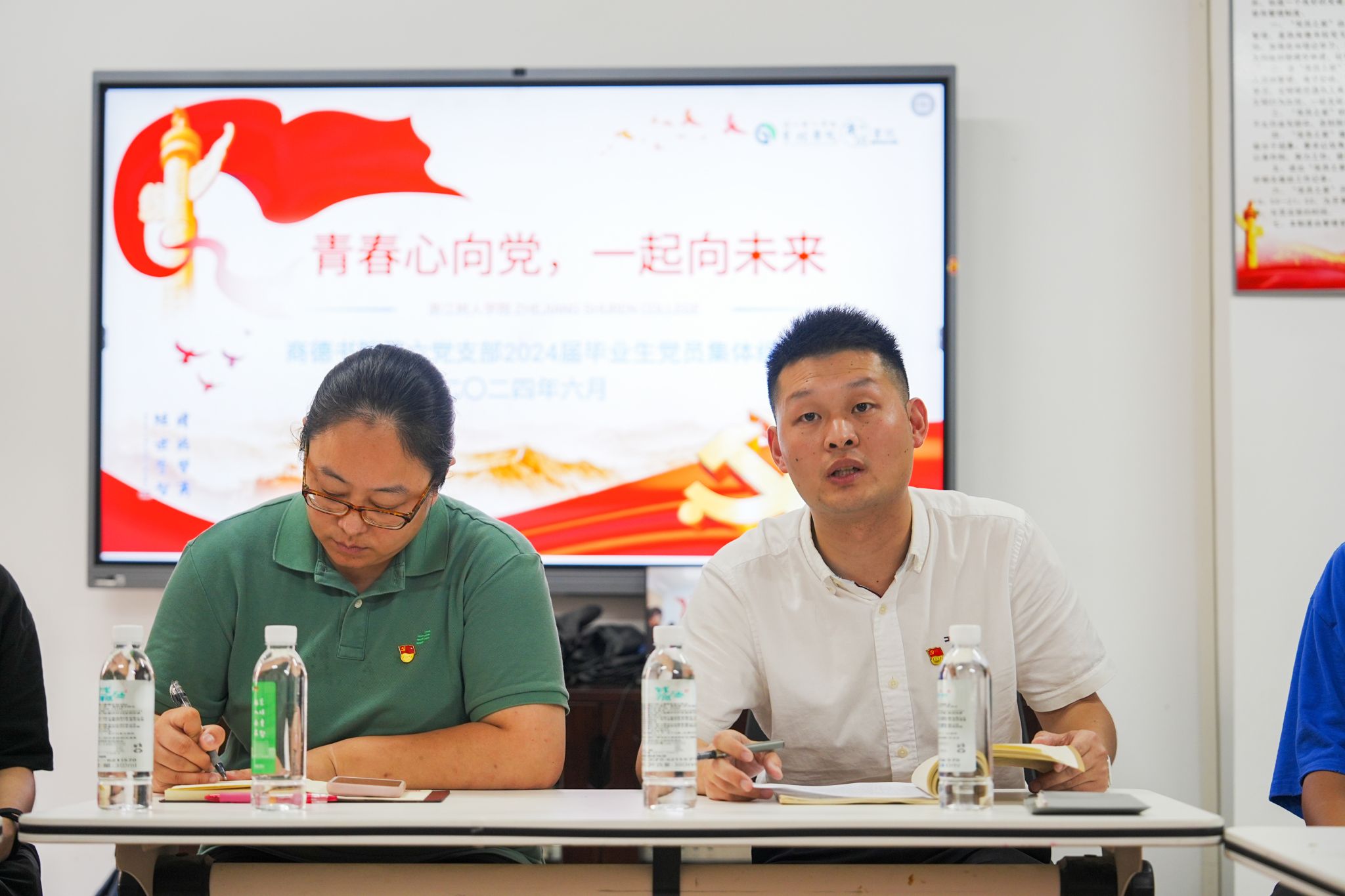忆初心,践使命,话未来。6月17日-6月18日,为切实做好毕业生党员的教育、引导、服务工作,激励广大毕业生党员牢记党的教诲,传承红色基因、贡献青春力量,在2024届毕业生即将告别母校之际,管理学院(商德书院)第六党支部与后勤保障处第一党支部向本支部党员组织开展了丰富多彩、形式多样的毕业生党员教育“四个一”系列活动,即“进行一次庄严宣誓”、“召开一次专题座谈会”、“上好一堂专题党课”、“开展一次主题党日活动”。商德书院第六党支部书记张勇财和后勤保障处第一党支部书记施勇萍、宣传委员陈莉老师及两个支部全体党员参加系列活动。