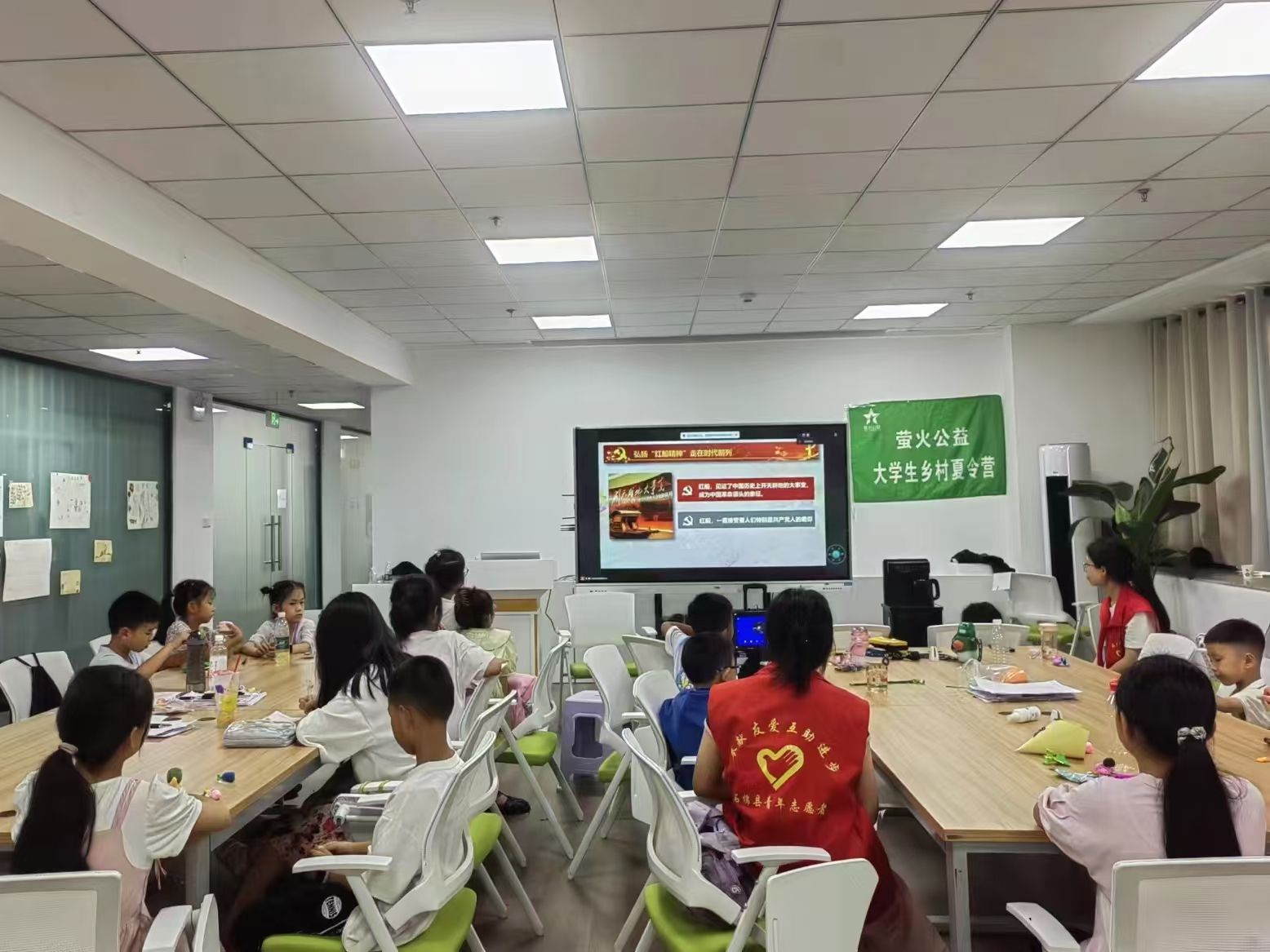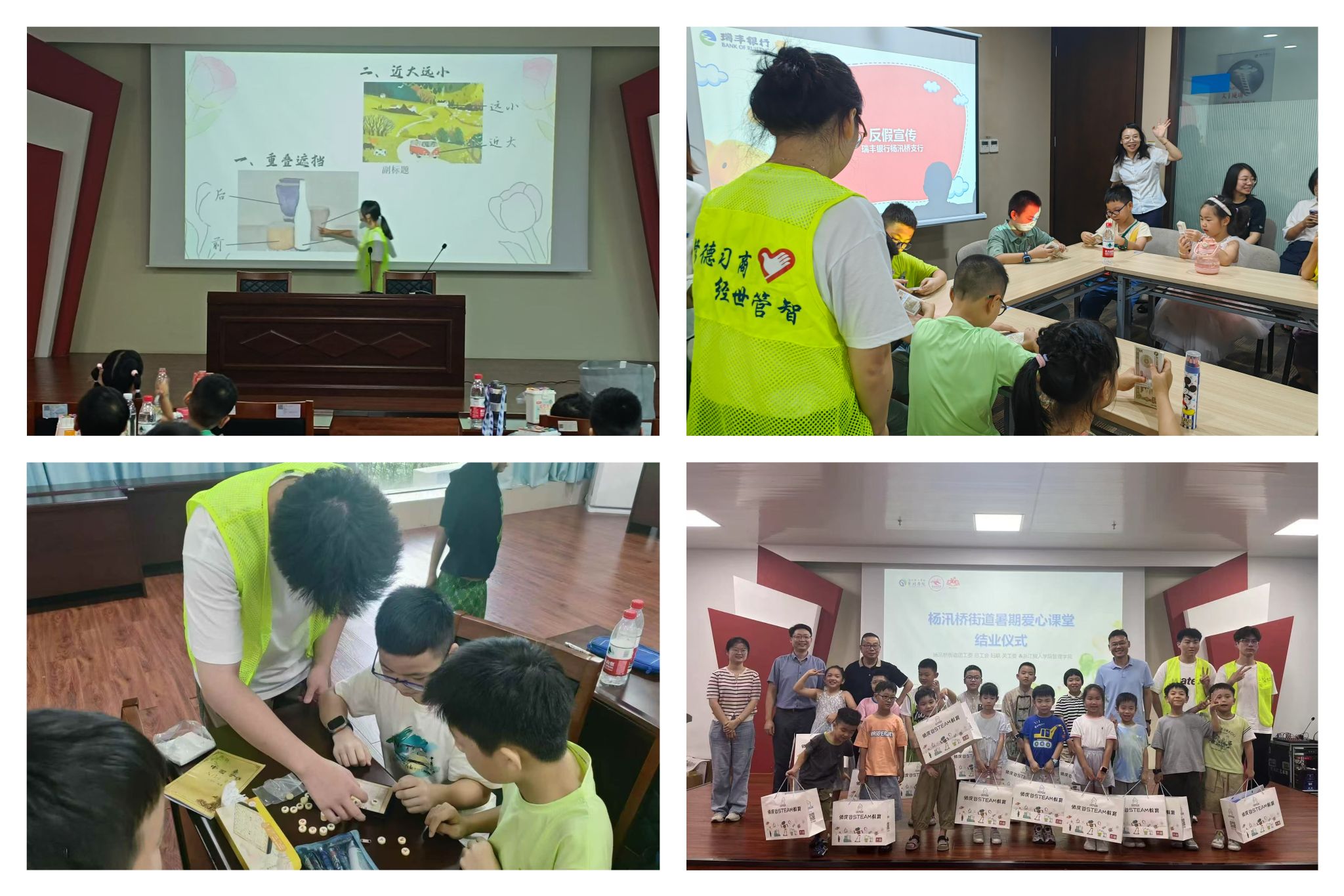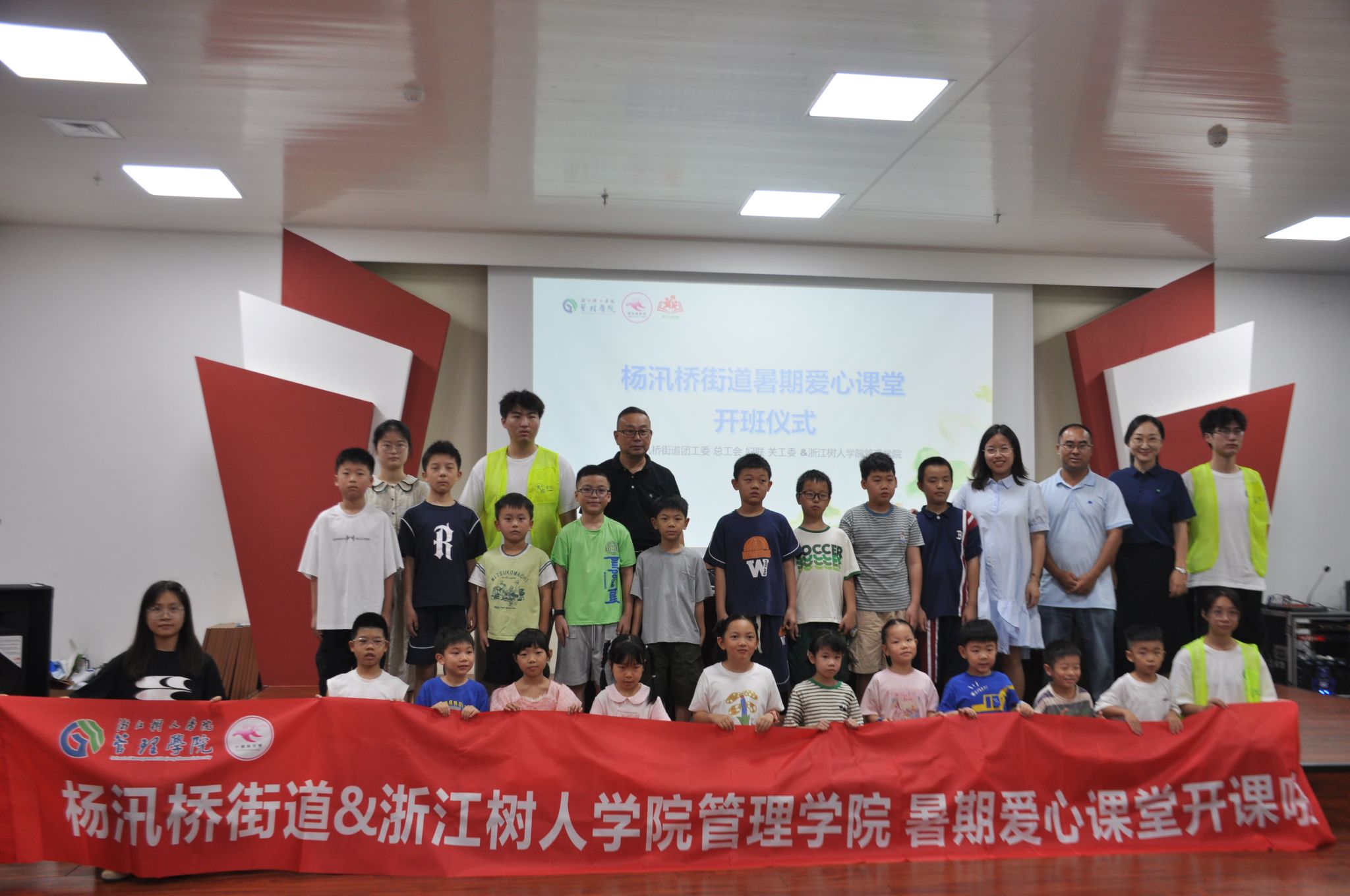 2024年8月19日—8月30日,绍兴市柯桥区杨汛桥街道和管理学院联合举办“暑假好‘趣’处,快乐一‘童’行”暑期爱心课堂。3名支部党员身着志愿服,走进课堂,化身知识的传播者、安全的守护者、秩序的维护者,帮助属地解决暑期“托管难、难托管”等问题,开启了“花式”带娃模式,让属地的孩子们假期不虚度,暑假有“趣”处。