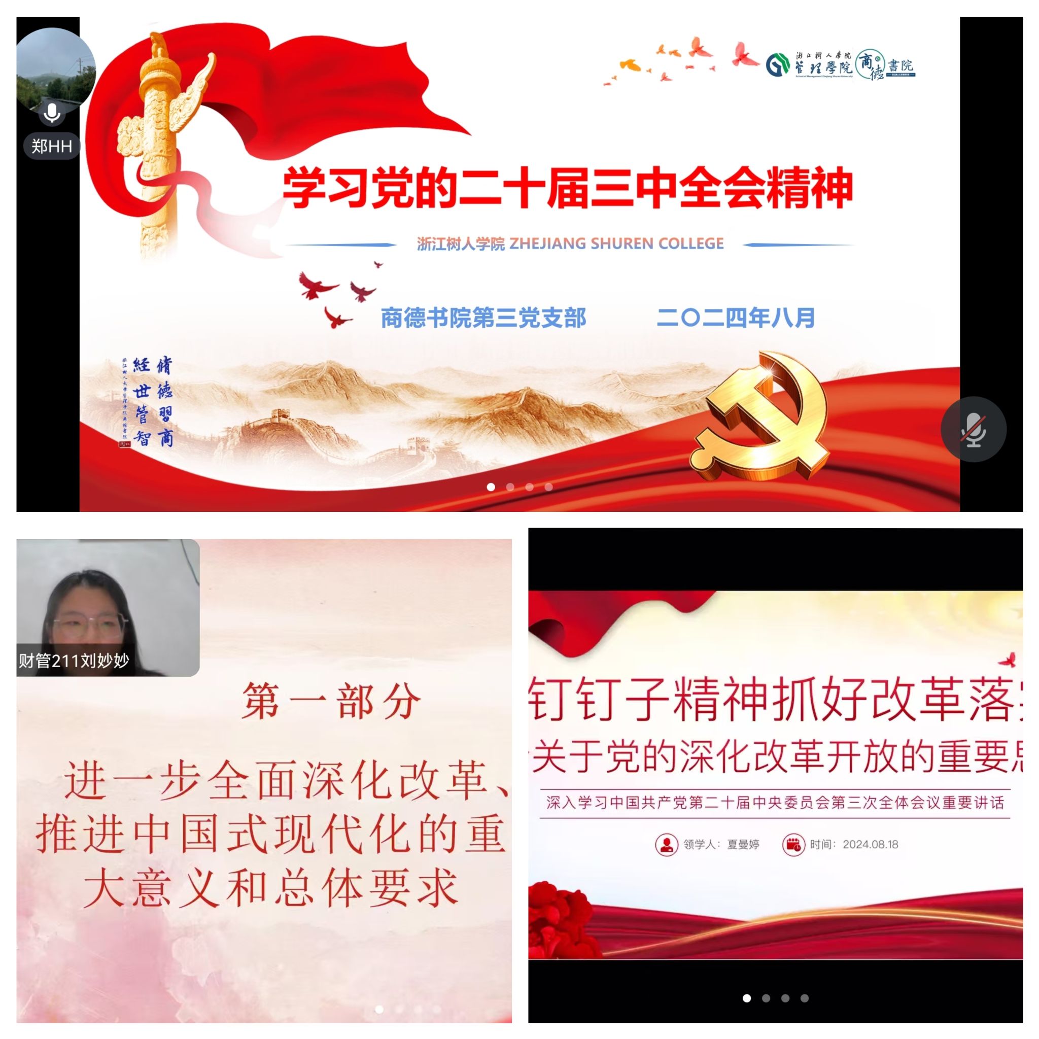 8月18日,支部组织专题学习党的二十届三中全会精神,集中学习了《中国共产党第二十届中央委员会第三次全体会议公报》、《中共中央关于进一步全面深化改革、推进中国式现代化的决定》以及习近平总书记就中央和国家机关学习贯彻党的二十届三中全会精神作出的重要指示。