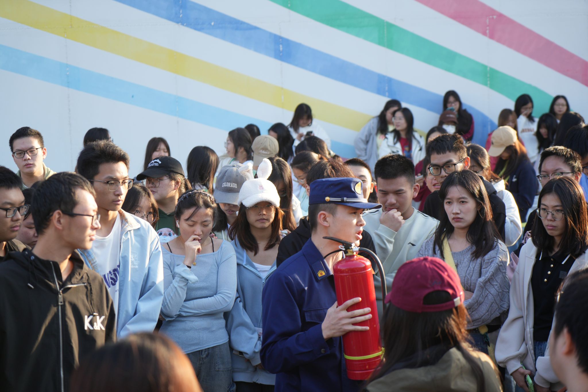 杨汛桥消防中队吴警官向大家普及宿舍消防安全知识,从火灾案例到预防火灾的方法、措施,再到火灾逃生时的应急逃生技巧,深入讲解了宿舍常见的火灾诱发因素及危害,并以图文结合的方式详细介绍了消防安全知识。提醒大家在人员集中的宿舍区域,安全问题尤其引人关注,一旦发生火灾,后果不堪设想。同学们要时刻保持警惕,任何事故的发生都可能对我们的安全和财产带来不可估量的损失。在寝室中要杜绝违规使用电器、私拉乱接电线等不良行为,共同保护学校公共消防安全措施。演练现场消防队员亲自示范消防器材正常操作流程,并热情邀请学生让他们亲身体验与操作消防器材使用要领,熟悉掌握消防安全技能有效提升了学生消防安全意识和自防、自救能力。