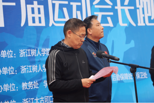 仪式上,副校长陈新民首先代表学校党政领导向全体运动员致辞,希望参加本次冬季长跑比赛的全体运动员弘扬“顽强拼搏、锐意进取、勇往直前、永不止步”的马拉松精神,用速度与激情演绎人生的无限精彩,用奔跑和超越展现树人的青春活力”。来自经济与民生福祉学院的丁一同学代表运动员发言,号召全体同学一起走向操场、走进大自然,迈出矫健的步伐,奏响希望的乐章,在健康道路上不断向前奔跑,实现树大人的青春梦想!