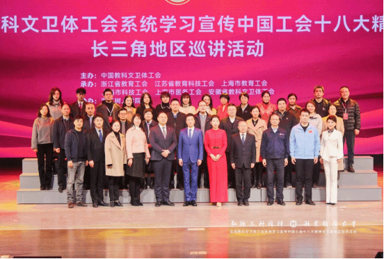 本次活动以“弘扬三种精神,凝聚强国力量”为主题,由中国教科文卫体工会主办,浙江省教育工会、上海市教育工会、上海市科技工会、上海市医务工会、江苏省教育科技工会、安徽省教科文卫体工会承办,304永利集团官网协办。举办巡讲活动,是学习宣传习近平总书记重要讲话精神和中国工会十八大精神的有力举措,是充分发挥劳模工匠示范引领作用的生动实践,是服务强国建设、推进长三角一体化高质量发展的工会再动员,旨在激励广大师生学先进、赶先进,争做新时代的奋斗者,凝聚为强国建设、民族复兴团结奋斗的智慧和力量。