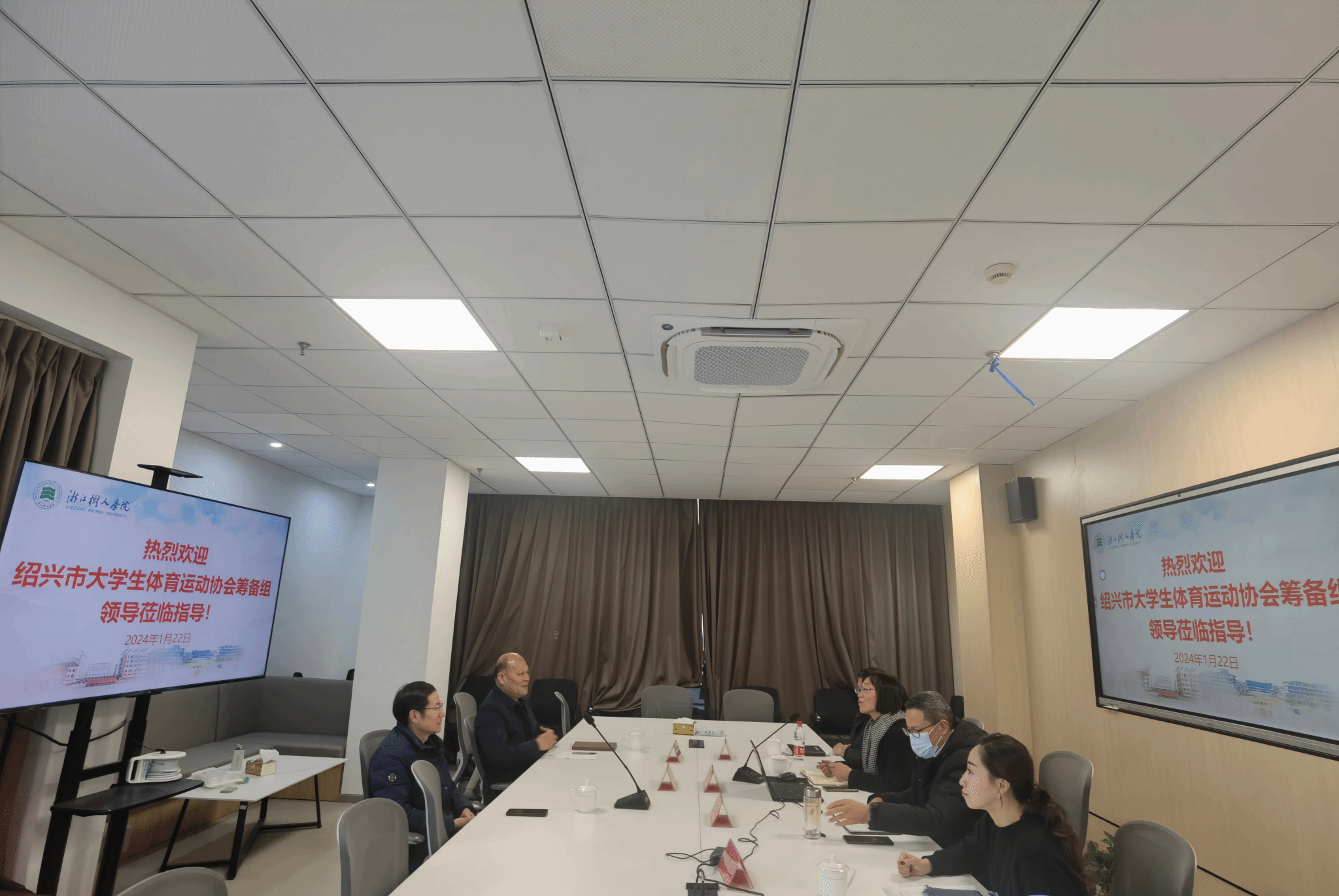 瑞雪纷飞,吉瑞普照。1月22日上午,绍兴市人民政府副总督学、绍兴市大学生体育运动协会拟任会长陈纪钢,绍兴市人民政府专职督学、原绍兴市教育局基教处处长孙国范一行,就绍兴市大学生体育运动协会筹建工作事宜赴永利官网杨汛桥校区调研,校长助理冯淑娟,体美劳教育中心主任邱辉明,副主任黄福挺,体育教师代表参加本次调研。