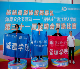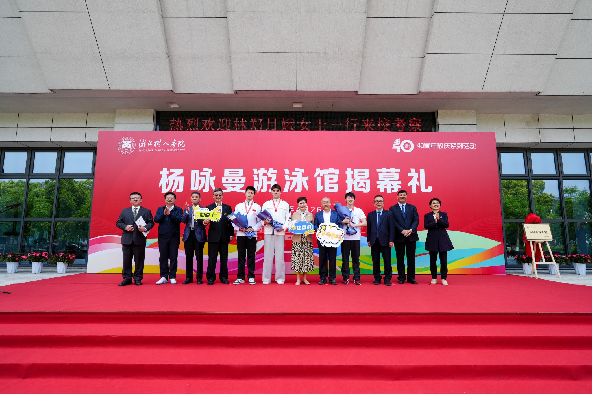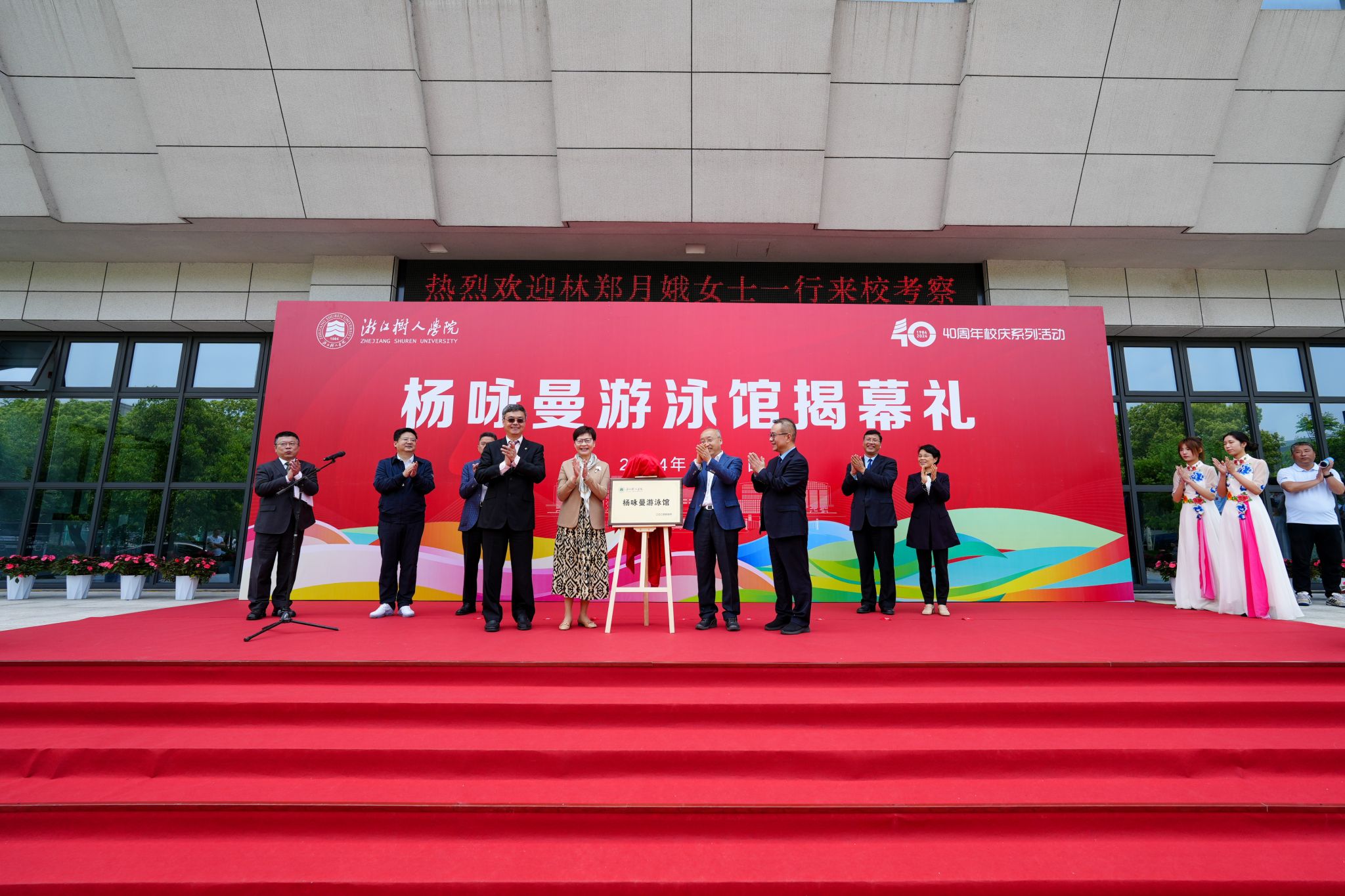 4月26日,304永利集团官网第三十一届运动会游泳比赛暨杨咏曼游泳馆揭牌仪式在杨汛桥校区游泳馆举行。香港特区第五任行政长官、香港舟山同乡会永远荣誉会长林郑月娥女士,十二届省政协副主席、省科普联合会会长周国辉先生,浙江省委统战部常务副部长徐旭先生,浙江省委统战部港澳台处副处长袁成先生,香港浙江同乡会联合会会长詹洪良先生,香港舟山同乡会名誉会长邱海斌先生,上海交通大学医学教授许泓女士,绍兴市委常委统战部部长叶卫红先生,绍兴市委统战部港澳台侨工作处处长童斌先生在永利官网校长李鲁、学校党委书记章清的陪同莅临现场。