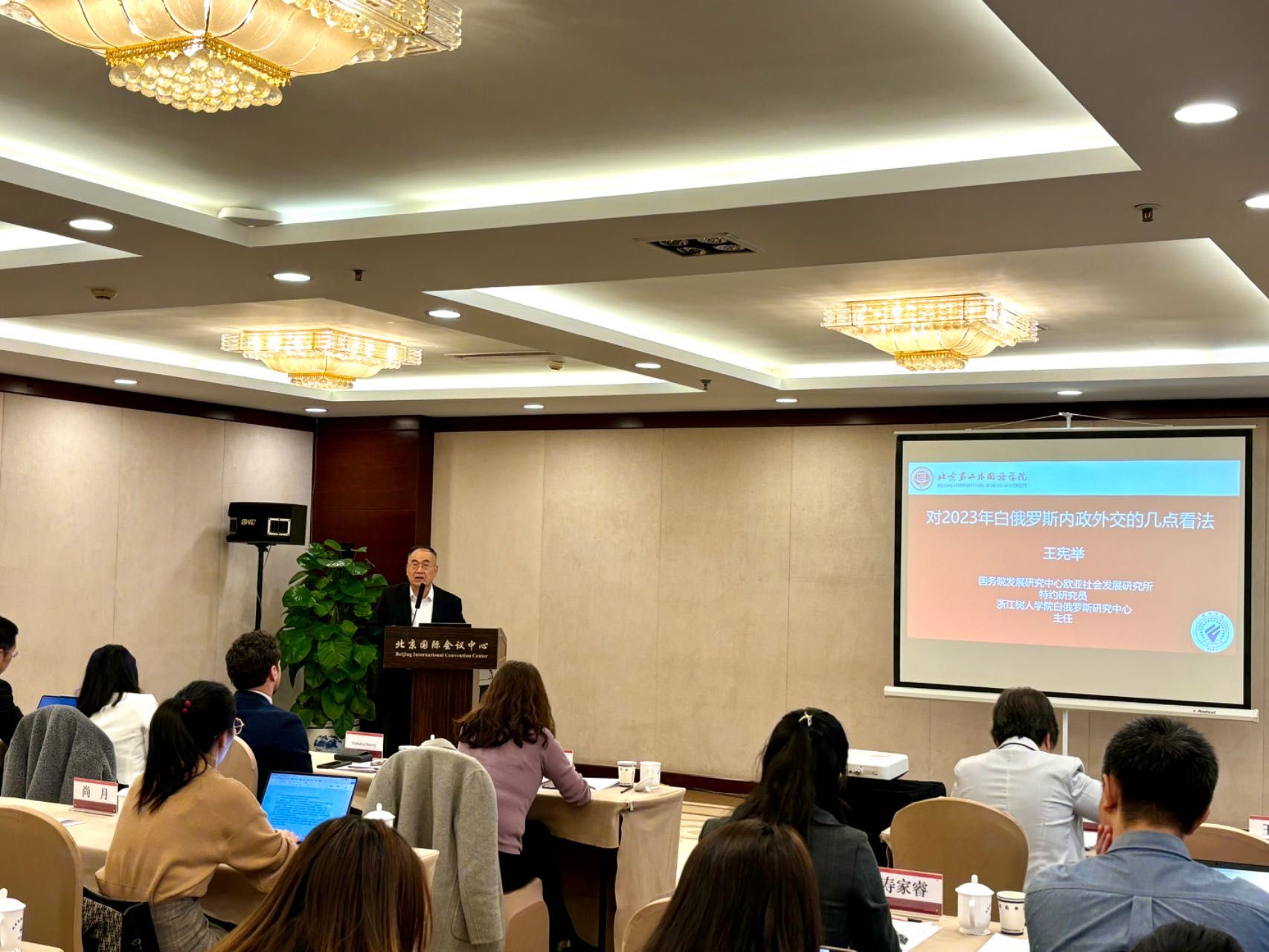 2023年12月2日,304永利集团官网白俄罗斯研究中心主任王宪举和研究人员杨丽萍、寿家睿参加第七届“白俄罗斯形势与中白关系”研讨会暨中国白俄罗斯研究中心年会。此次会议由北京第二外国语学院白俄罗斯研究中心在北京主办。