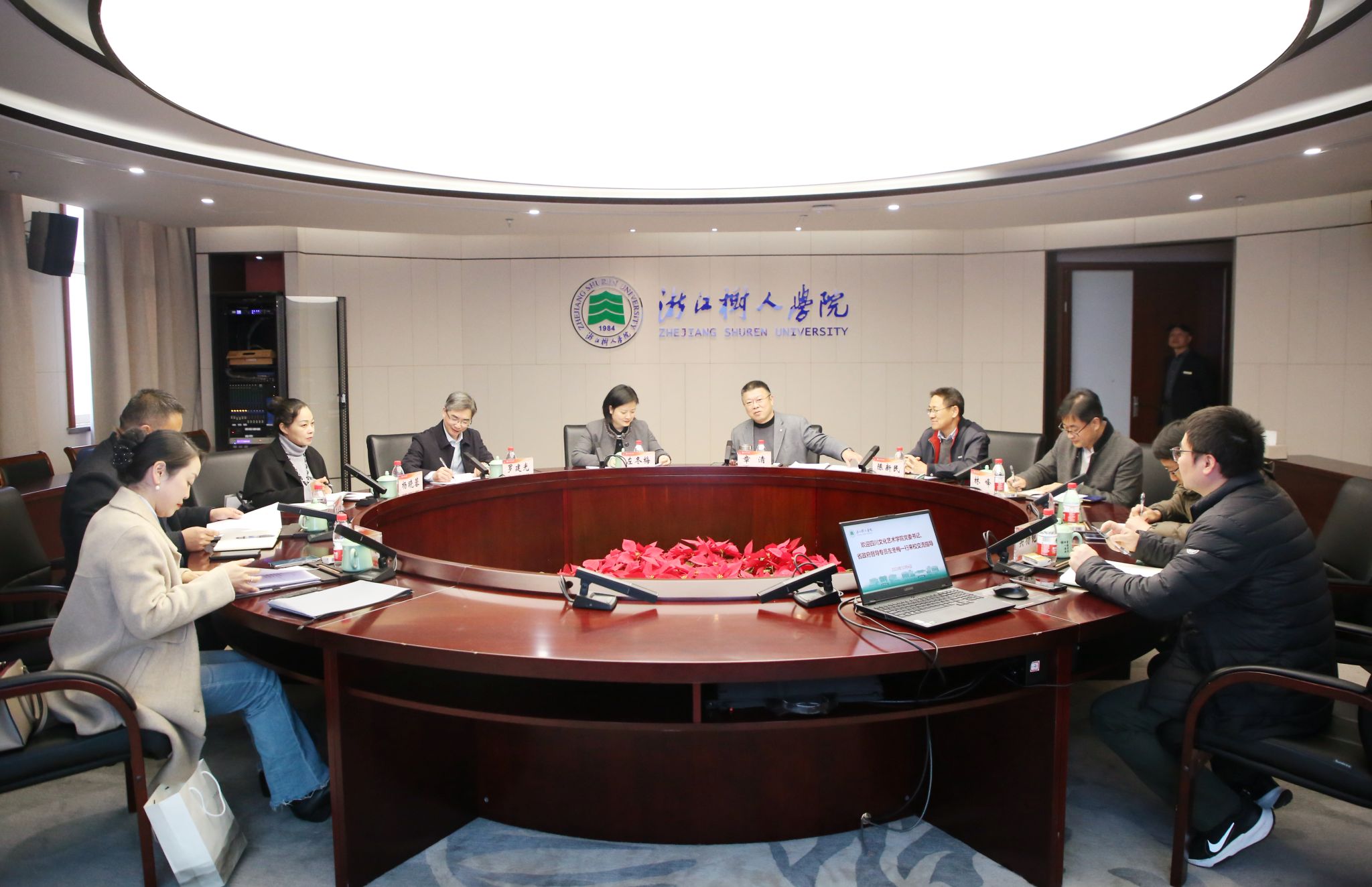 12月6日下午,四川文化艺术学院党委书记、省政府督导专员左冬梅,党委委员、副校长罗建光一行5人来永利官网杨汛桥校区调研。校党委书记章清、副校长陈新民出席,党办、校办、组织部、学工部等相关职能部门负责人参加座谈会。