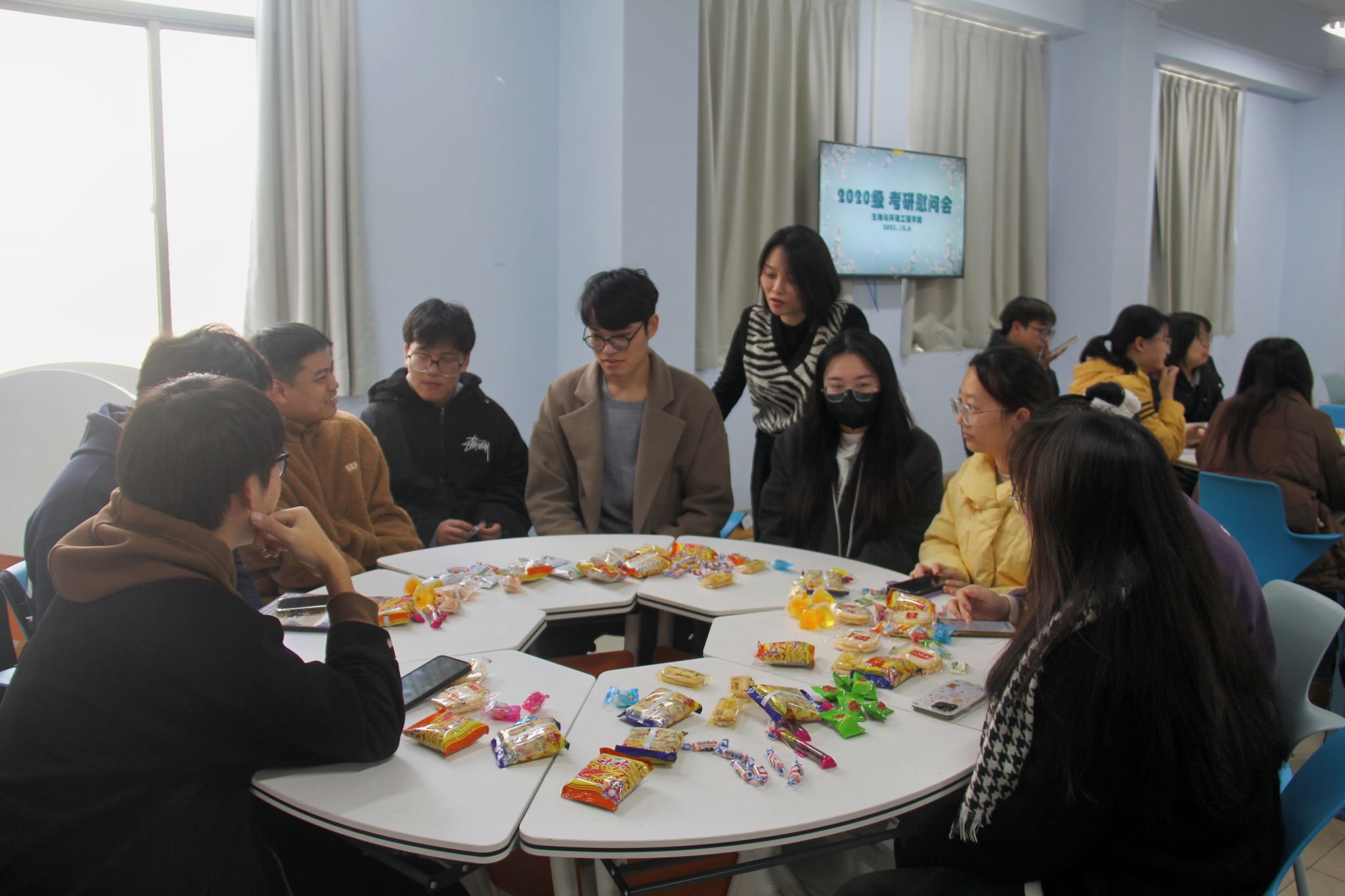 2024届全国硕士研究生入学考试已经临近,为缓解考研学子压力,增强迎考信心。生环学院于12月6日中午举行“‘研’途相伴,助梦启航”考研慰问动员会。生环学院院长陆胤、院党委书记应海儿、副院长韩超、全体年级辅导员、部分考研学子代表参加了本次活动。老师们在初冬为考研学子们送上了关切问候与暖心礼包。会议由学院党委副书记翁就勇主持。