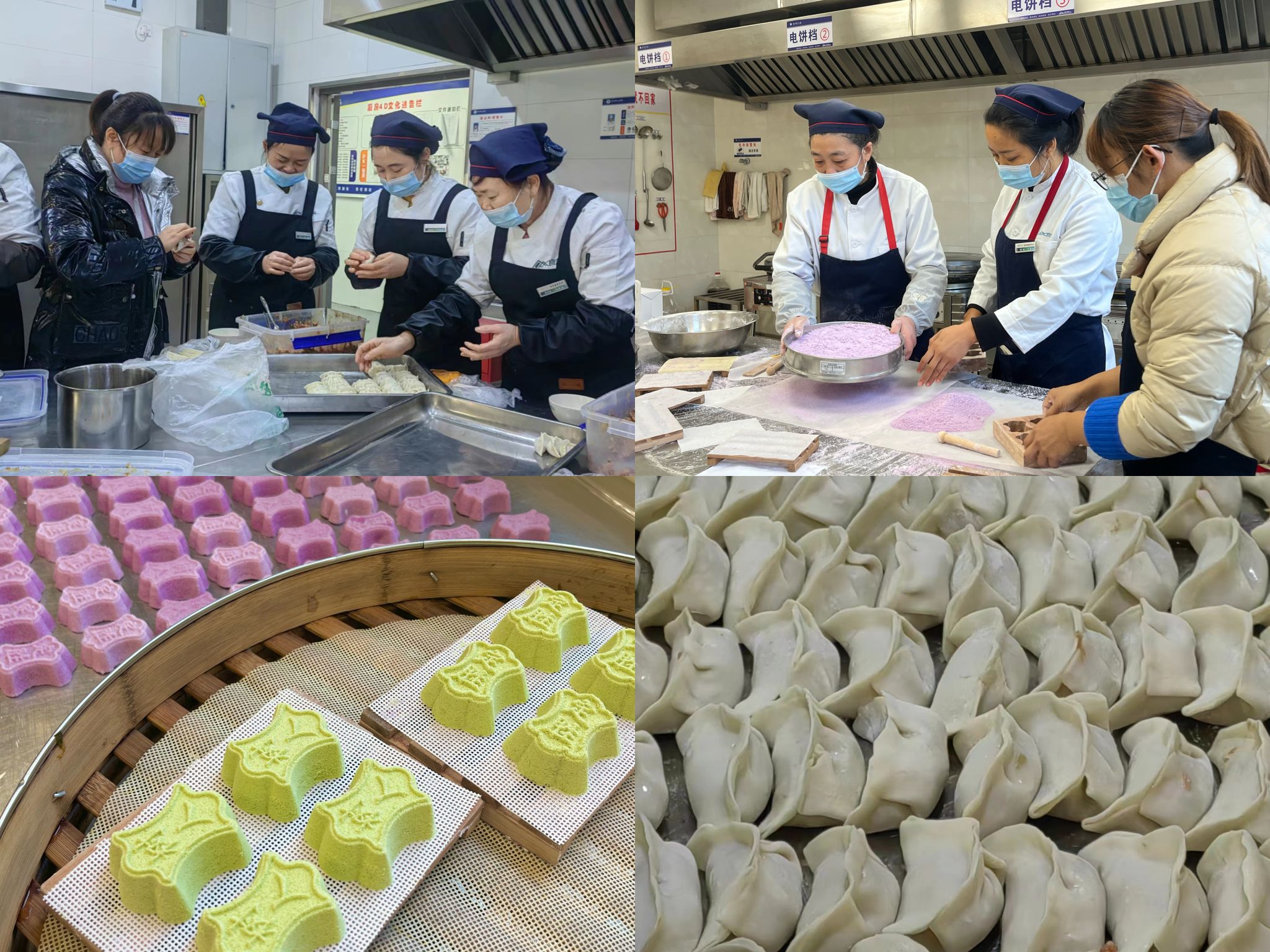 尽心准备,有机配合。活动预热的同时,学校各餐厅员工、膳管会成员的幕后工作亦在有序开展:从餐品水果的保质保量准备到饺子定胜糕的手工现场制作,从活动人员保障到加油福袋组装,大家都精心准备,有机配合将考研祝福具象化。