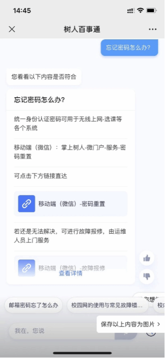 我们的“树人百事通”智能问答平台上线了,