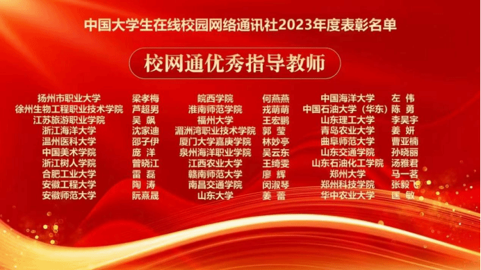 近日,教育部中国大学生在线校网通及校园行活动2023年度表彰名单正式公布。永利官网一共获得5项荣誉:“年度校园新媒体互动百强”、“优秀校网通站”、校全媒体中心主任曾晓江被评为“校网通优秀指导教师”、校全媒体中心外宣部学生记者陈青霞获评“优秀校园媒体人”、新媒体作品“多位院士走进304永利集团官网开讲“器官移植”通识课”入选“年度优秀内容榜单”。