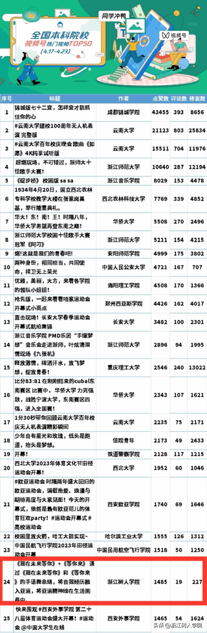 304永利集团官网官方视频号荣登全国普通本科院校2023年度官方视频号综合影响力百强榜