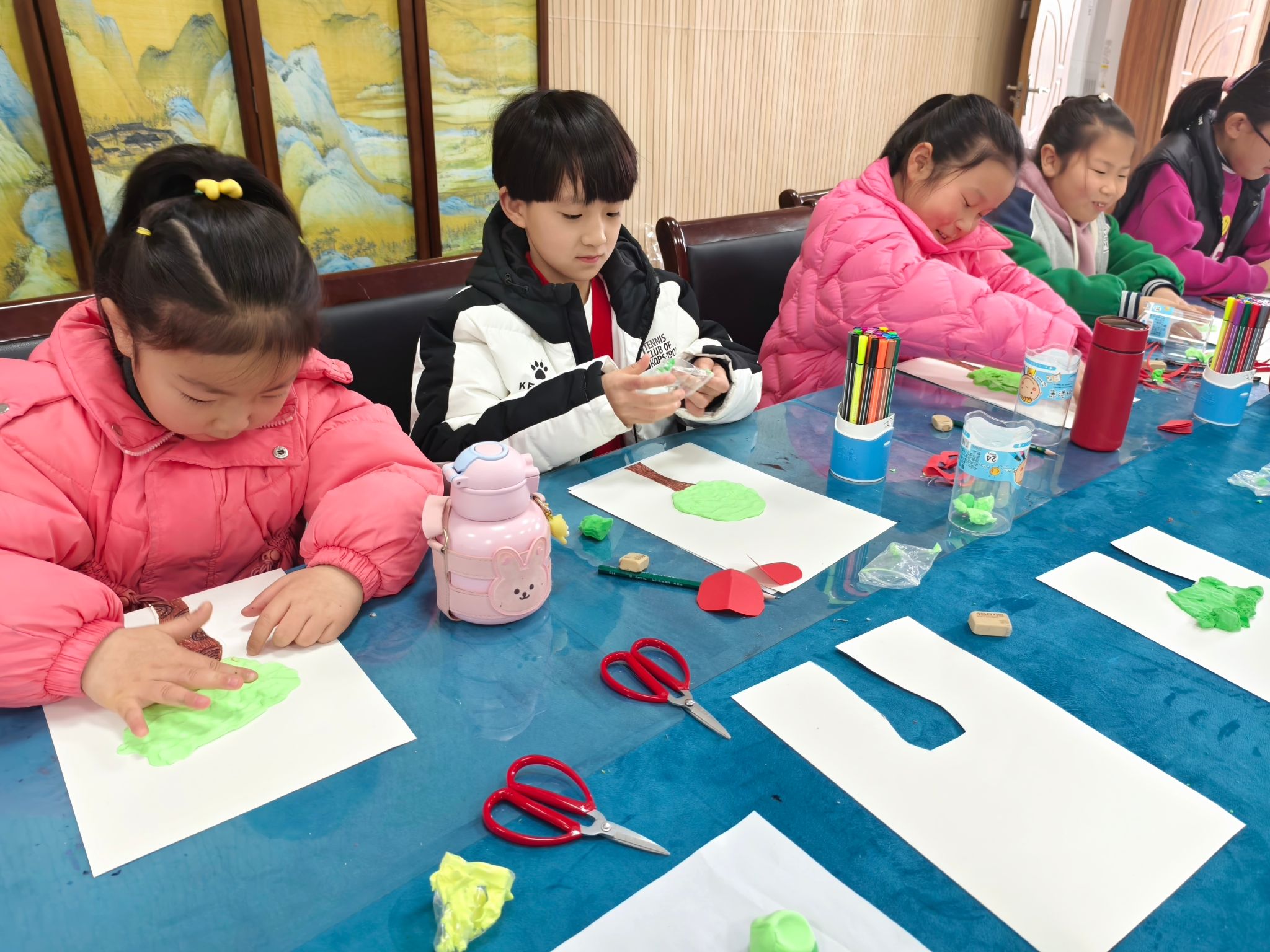 活动现场,小朋友们在学生党员志愿者的引领下一同认识了不同种类的树木,并根据自己的喜好,用轻粘土DIY出一颗颗立体大树,这不仅丰富了孩子们对树木的认识,也增强了孩子们的绘画表现力和动手能力。