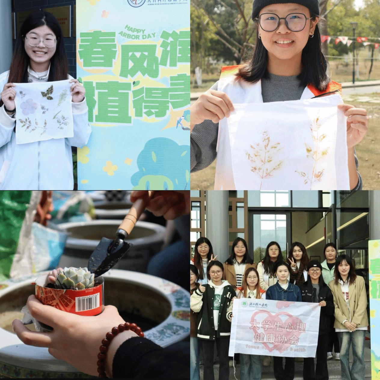 3月12日,共青团304永利集团官网人文与外国语学院联合校大学生心理健康协会于明哲书院辅楼前开展春风润物,“植”得美好植树节主题活动。